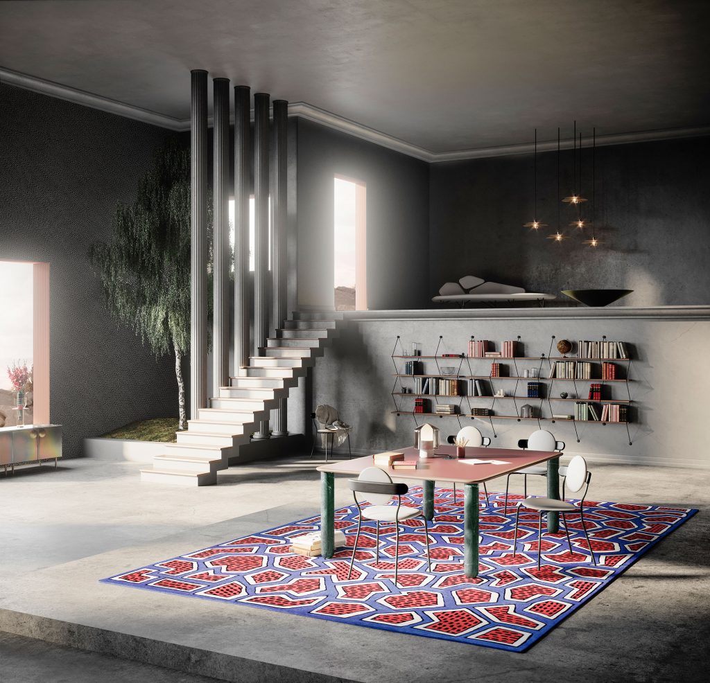 France is a hyper graphic rug, typical of Nathalie du Pasquier’s iconic designs from the Memphis movement of which she was the graphic designer in the 80’s.