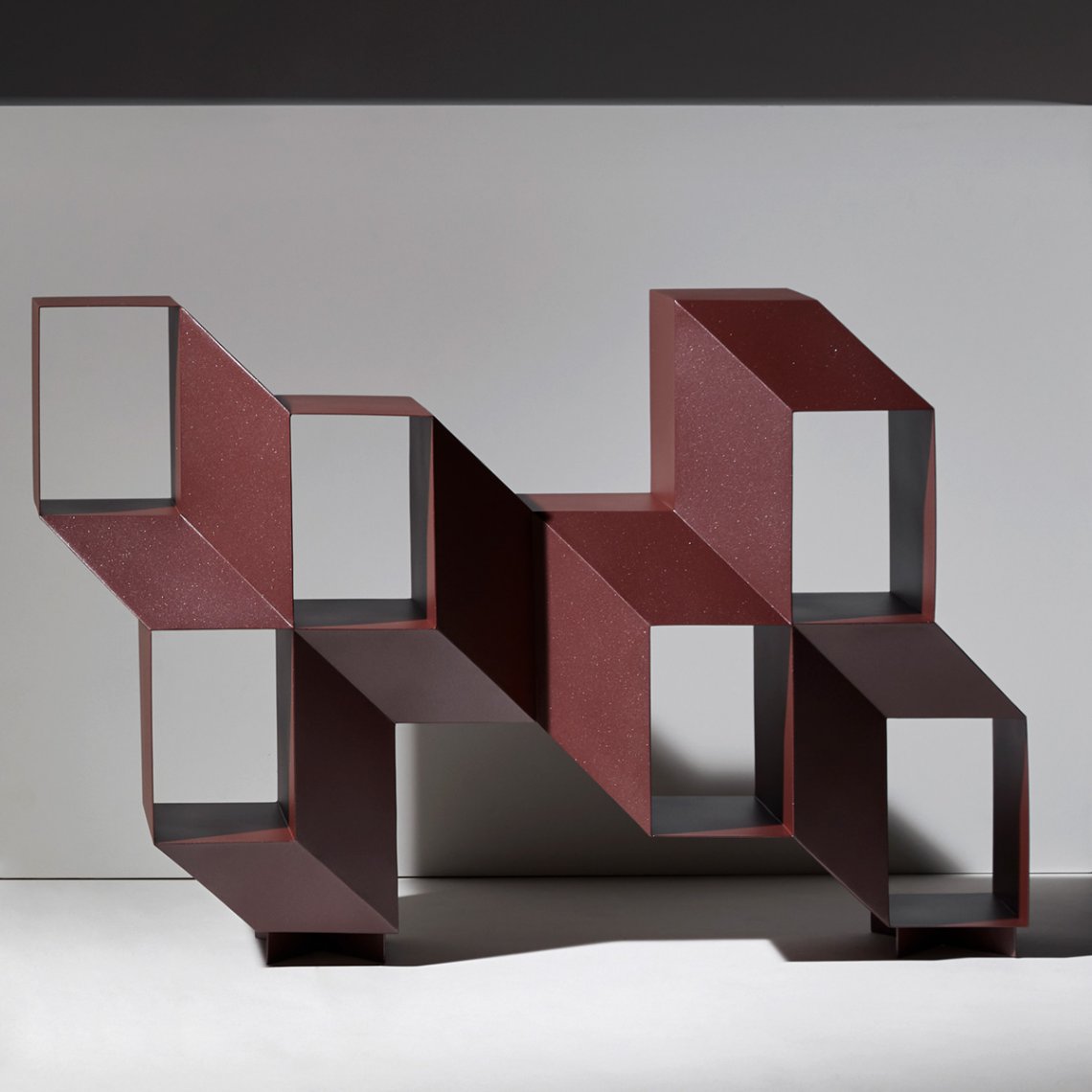 Rocky is a sculptural piece. It can be used as a console or a credenza, but will also accommodate books and objects to become the most graphic display or bookshelf.