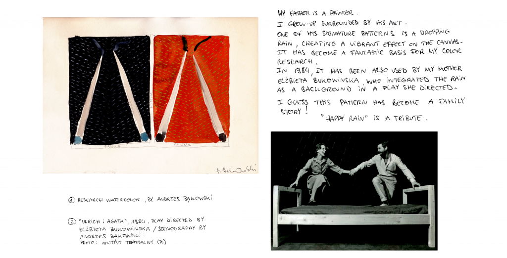 Happy Rain is a wallpaper full of joy and energy. Marta Bakowski has drawn each stroke by hand to give life to this apparently simple pattern and get the vibration feeling while you look at the whole wall covered.