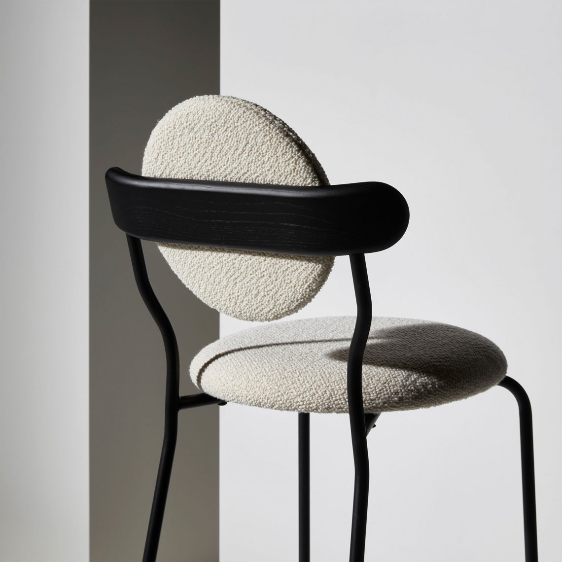Planet is an upholstered chair inspired by the distinctive silhouette of planet Saturn. The upholstered seat and back ensures a high level of comfort, but Planet chair remains a featherweight at only six kilos for practical use every day.