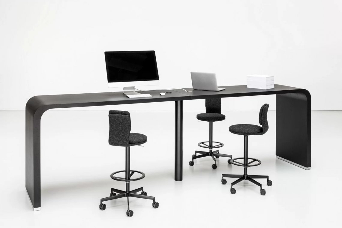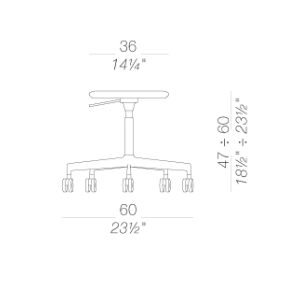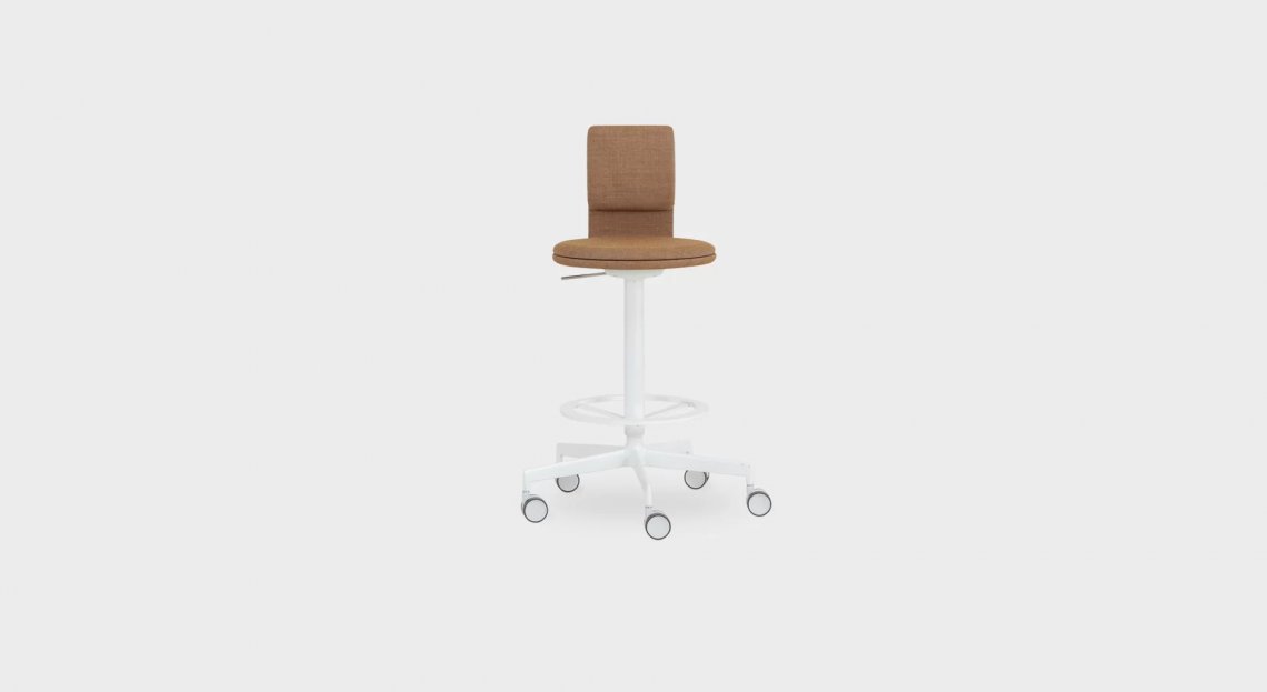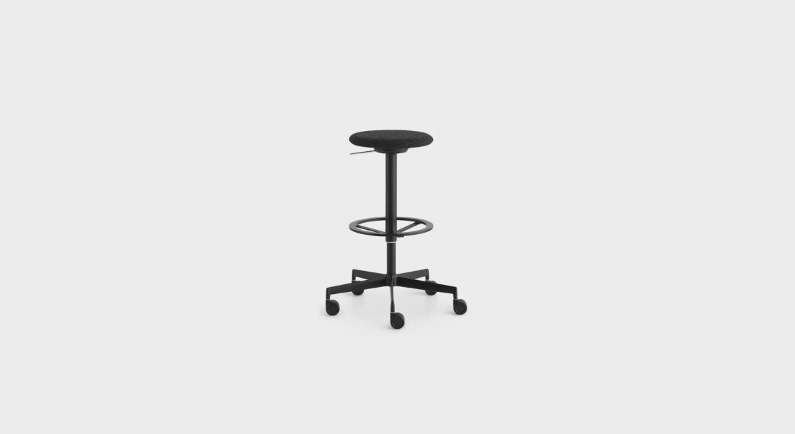 La leggerezza dello sgabello incontra la comodità della sedia: grazie a uno schienale mobile, questa versione di LAB con 5 ruote autofrenanti e altezza regolabile diventa un pezzo facile, funzionale e versatile.