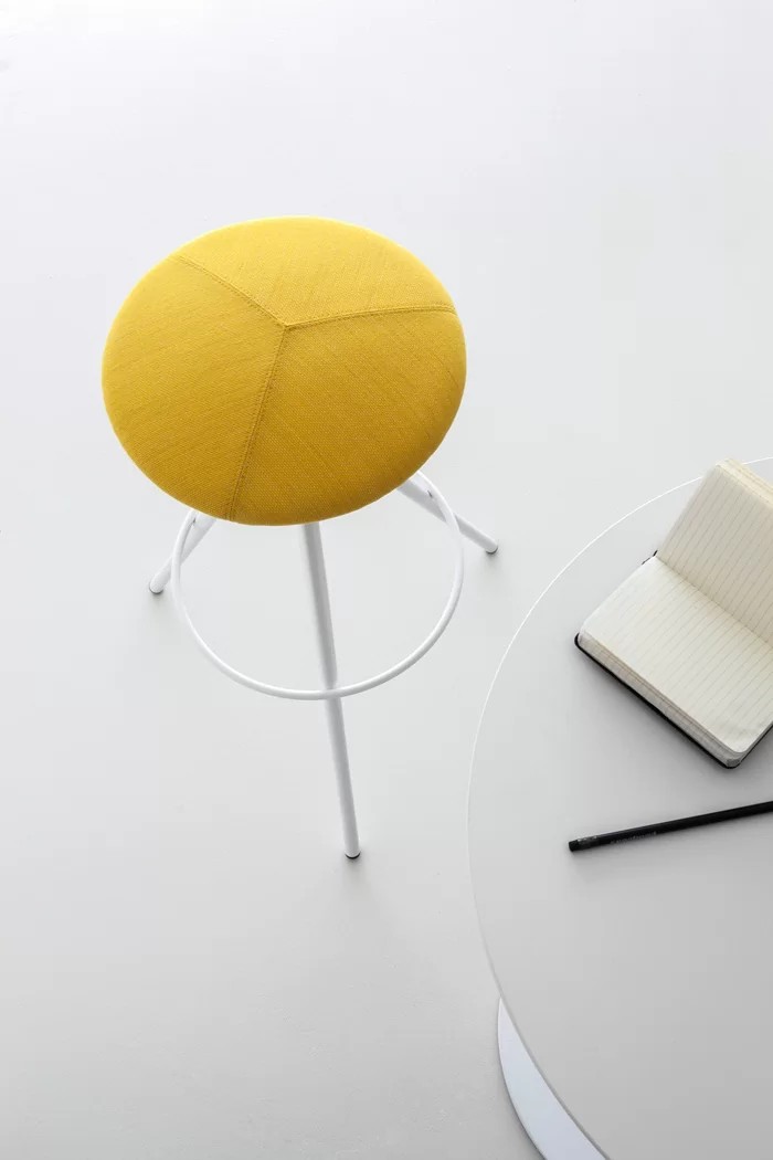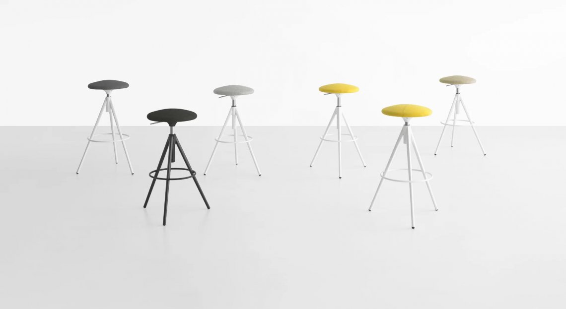 Ricorda un volante, questo sgabello girevole WIL che si ispira dichiaratamente al mondo dell’automotive. Senza schienale, asciutto nelle linee e molto maneggevole, trova la sua particolarità nell’inedita base a tre gambe.