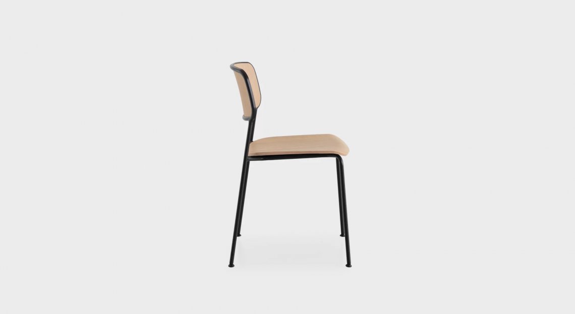 Ti siedi e pensi solo cose belle. E con la stessa felicità grafica, Hee Welling ha immaginato una linea continua, bianca o nera, che unisce ogni parte della nuova splendida KISAT. I materiali si alternano con virtuosismo tecnico, e lo schienale, inserito in una cornice di alluminio pressofuso, diventa una seduta di assoluto comfort, per trasformarsi nelle quattro basi d’acciaio inossidabile verniciato a polveri. Spalliera e seduta sono in legno di rovere o rivestiti di tessuti di vari colori. Impilabile, versatile, questa sedia infonde eleganza e scioltezza a ogni ambiente, dall’ufficio alla ristorazione, alla casa, al nostro cuore.