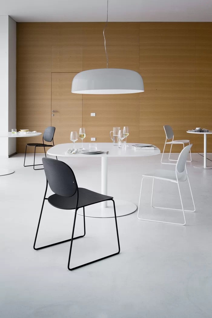 Quadrato o rotondo, il piano del tavolo RONDò poggia su una colonna slanciata su base rotonda, regolabile in altezza, per dare vita a un elemento d’arredo originale e ricercato.