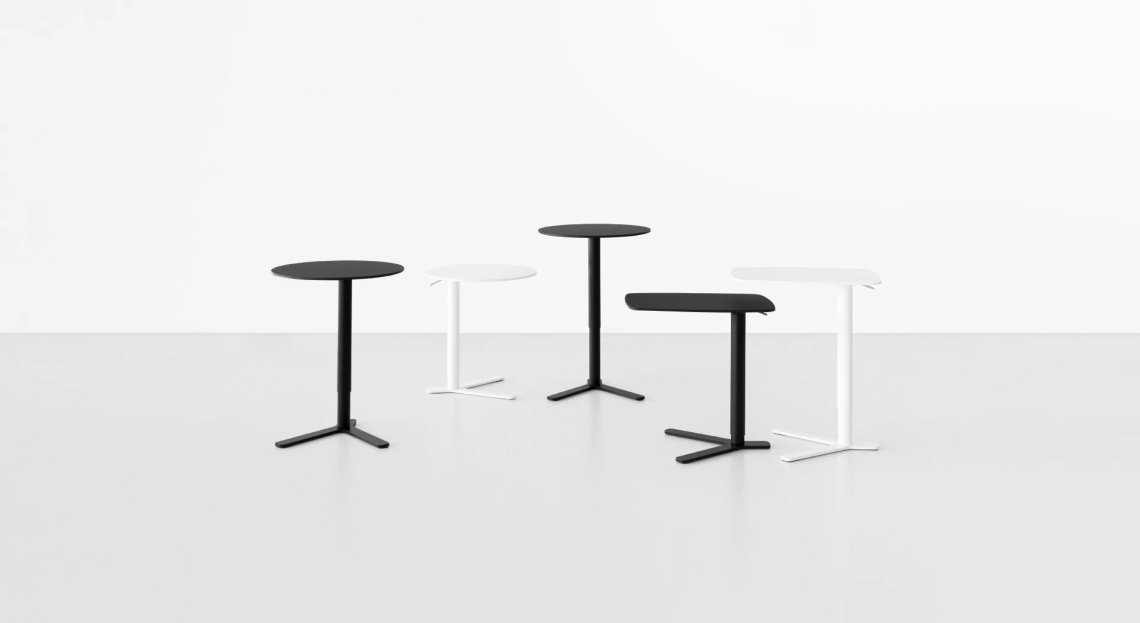 Il tavolino YO con piano rotondo è un elemento d’arredo leggero e versatile, pensato come appoggio supplementare da abbinare a divani e poltrone.