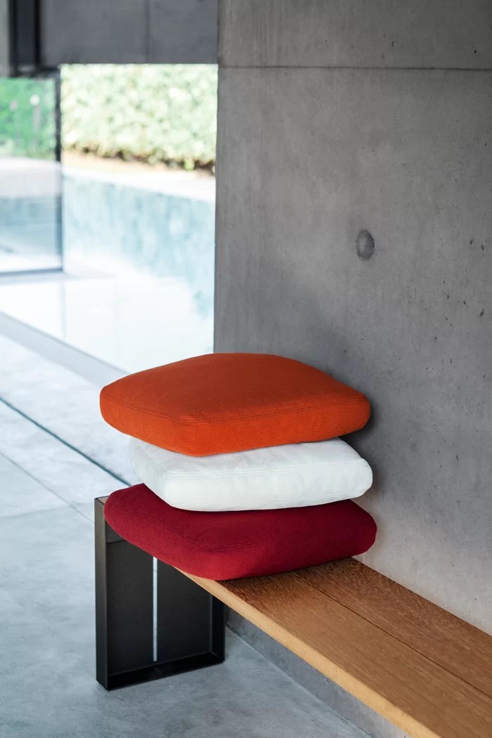 Puro benessere. In ogni soluzione outdoor, il cuscino OORT, quadrato e in due misure, completa la bellezza accogliente di ogni seduta. L’imbottitura è composta di una miscela di microfibre poliestere, ipoallergiche e idrorepellenti, mentre il rivestimento di protezione è impermeabile e traspirante. In una scelta di oltre quaranta colori, il tessuto esterno è sfoderabile e ideale per ogni soluzione outdoor.