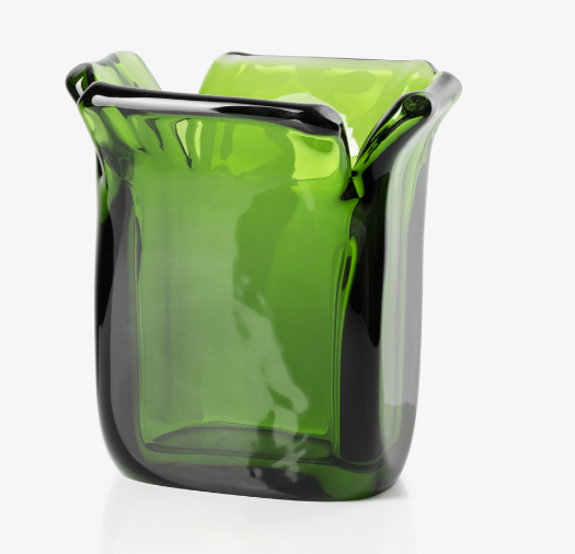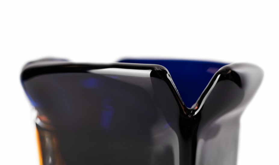 When a glassblower picks up the molten glass and blows, he creates a perfect sphere. Franti?ek Vízner's boxes are unique because, although they are made of metallurgical glass, they are not organic in shape, but rather geometrically angular. The glass boxes resemble paper boxes. They open at the top and arouse the imagination. What is hidden inside? Although they are vases, the primary intention is not to display flowers in them. Vizner created objects to be displayed as solitary objects.