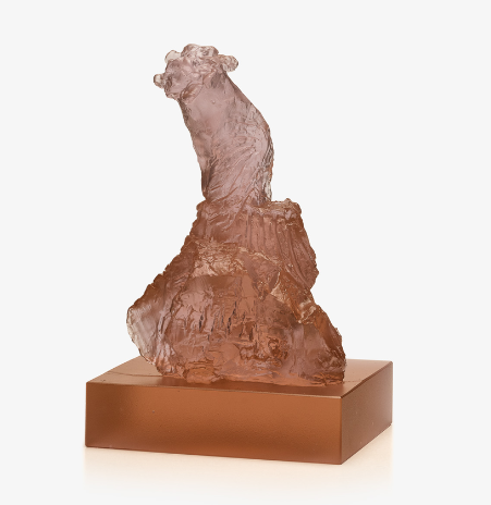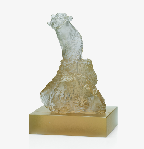The two pieces are called Rosencrantz and Guildenstern, like the characters from Shakespeare′s Hamlet. They were born as grey clay statues and transformed into beautiful glass objects. Their final form fascinates onlookers by its color variability. The monsters are made of special glass which reacts to the light. At one moment they are completely brown, while the next they brightly shine in shades of green.