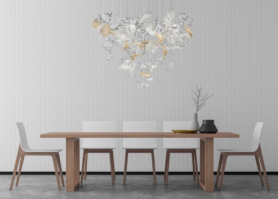 Nature has always been difficult to grasp. Catch the wind, halt the setting sun – these are impossible feats. But now, cutting-edge glass-making technology is able to freeze nature in place for all to see. The Dancing Leaves installation represents just such a symbiosis between the natural movement and state-of-the art design. Now, you can capture and keep that moment when a sudden gust of wind scatters a drove of plane leaves. It is as if the approaching winter froze them in their perfect place, forever suspended in the space of your home.