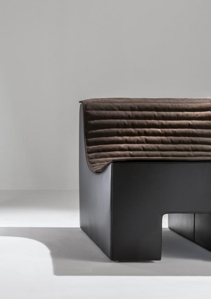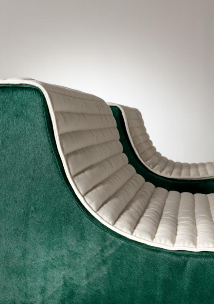 Seat and backrest covered with a removable and customizable quilted cushion available in various finishes and designs.