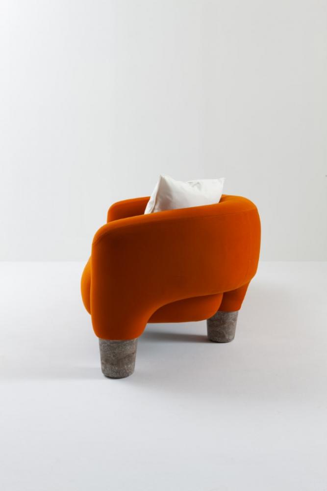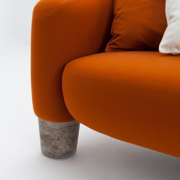 Upholstered sofa covered in leather, velvet or fabric, featuring four sturdy legs in solid marble or in solid wood.