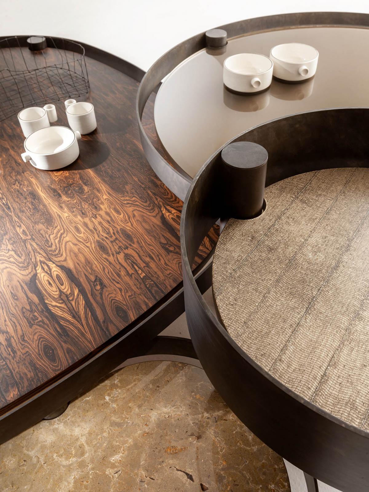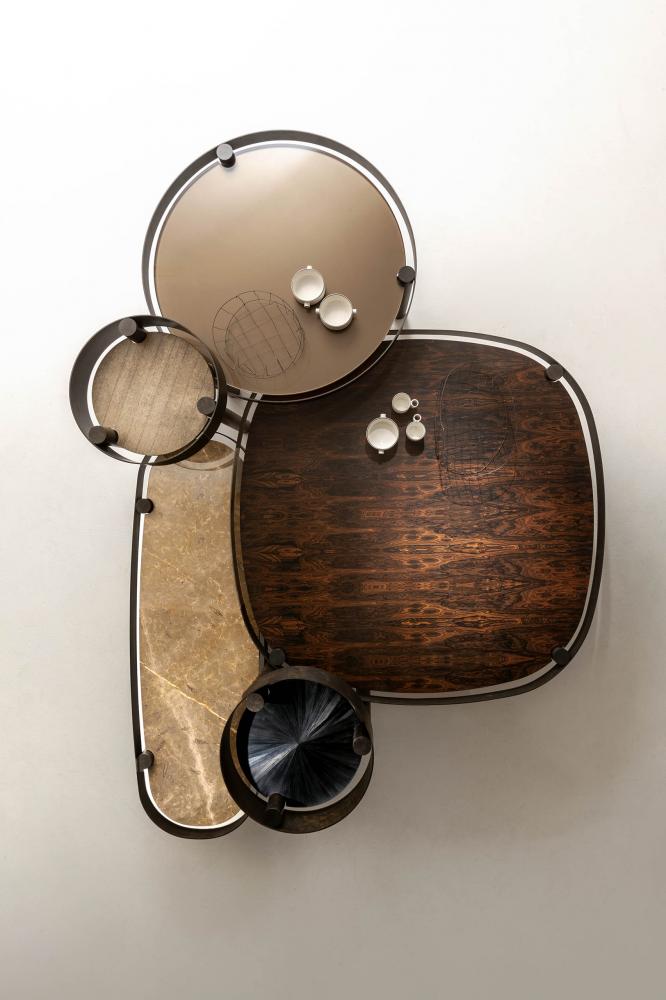The Tray coffee tables, with a modern and creative design, are designed to create magnificent multiple compositions of juxtaposition and overlapping.