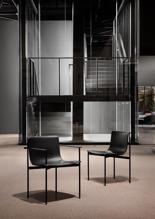 The Ombra dining chair, armchair and stool embodies Lema’s discreet style and the bold approach of Piero Lissoni. The Ombra collection is characterised by a metal structure, light to the eye but solid in function, which supports the shell capable of accommodating chairs and backrest. Formed from a rigid polypropylene sheet, minimal in thickness, the shell is also available with leather upholstery with very light padding. The stool, a novelty of the Lema 2022 collection, is part of the Ombra project, a family of furnishing accessories that arises from Lema's profound research on shapes and materials, which has allowed the development of a seat capable of combining great stylistic refinement and a balanced value for money.