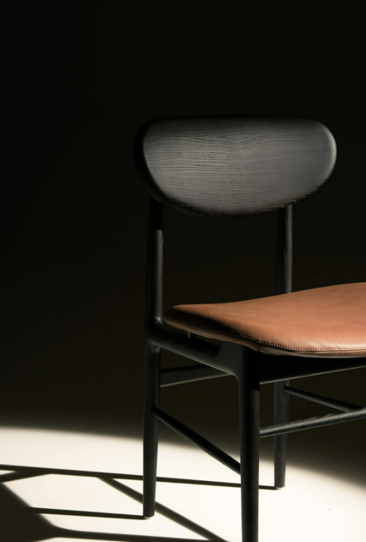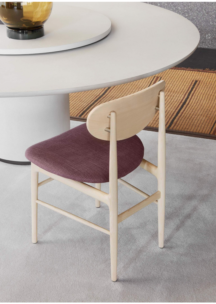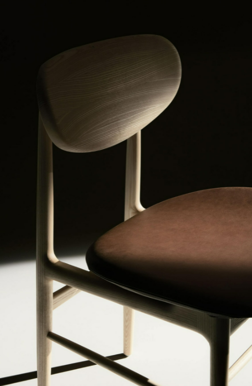 An unexpected degree of comfort. Boasting meticulous attention to detail and skilled craftsmanship, the Fred dining chair is inspired by mid-century furniture and fine Italian style, which is represented through an approach focused on the minimalism typical of Danish aesthetics. The chair’s solid wood backrest is perfectly rounded to gently support sitting in any position thanks to the flexible upholstered seat. Solid wood, upholstered comfort, a light appearance, and delicate contours: the design of the Fred dining chair combines wood bone joints and brass fixtures, drawing attention to details and the materials’ inherent qualities.