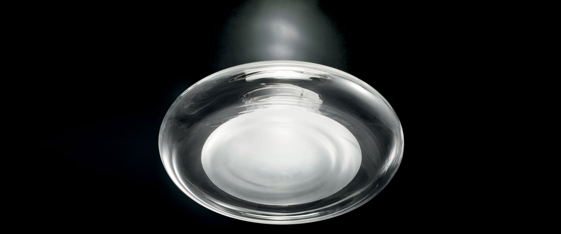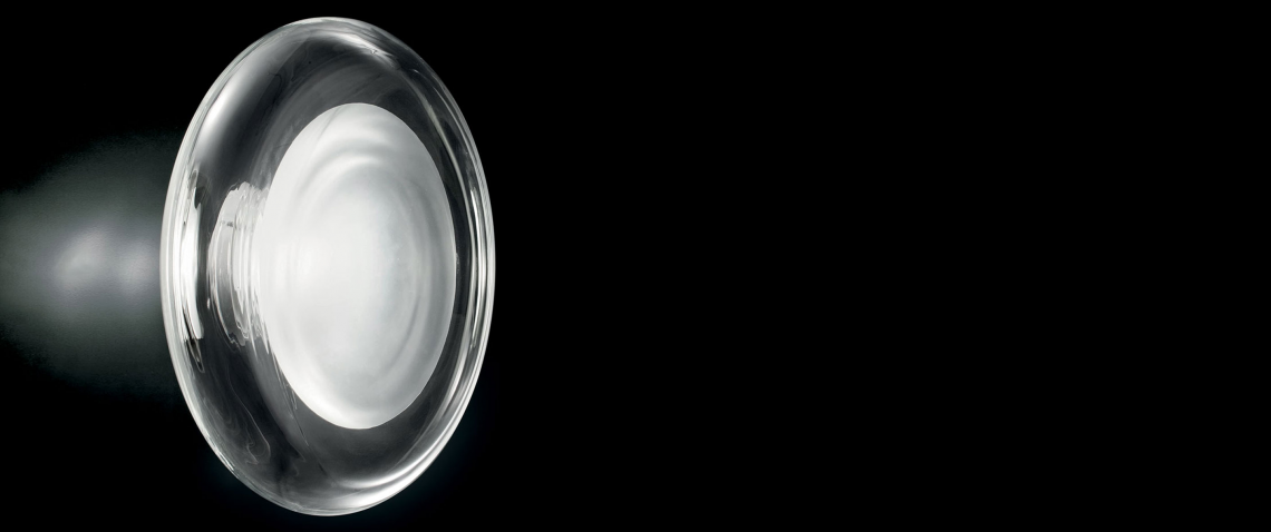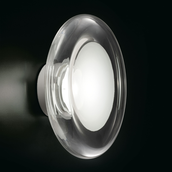 Keyra è una lampada da parete, soffitto e sospensione con diffusore in vetro soffiato a bocca disegnata da Roberto Paoli. Il vetro soffiato trasparente è lavorato a mano e parzialmente decorato da una macchia bianca che restituisce materialità all'oggetto e diffonde la luce verso il basso. Un attento studio della forma e della trasparenza crea un cerchio illuminato e pieno di eleganza. Disponibile in 2 misure (30 e 60 cm).