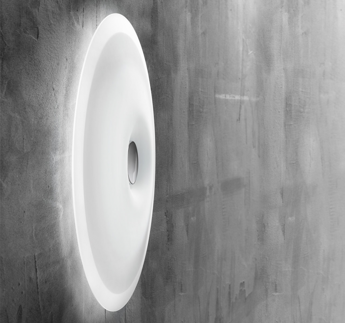 Planet è una lampada decorativa da parete e soffitto a forma di cerchio disegnata da Leucos Design Lab. Il diffusore è composto da una lastra di vetro termoformato e serigrafato di colore bianco con bordo semitrasparente. Il profilo di vetro si inarca verso l’esterno, schiacciato al centro dal bottone cromato che aggiunge interesse visivo. Sebbene Planet sia a basso profilo (ADA) ha un alto impatto visivo. Disponibile in 3 misure (32, 48 e 65 cm) Planet è una lampada con un sorprendente effetto decorativo se utilizzata in multipli.