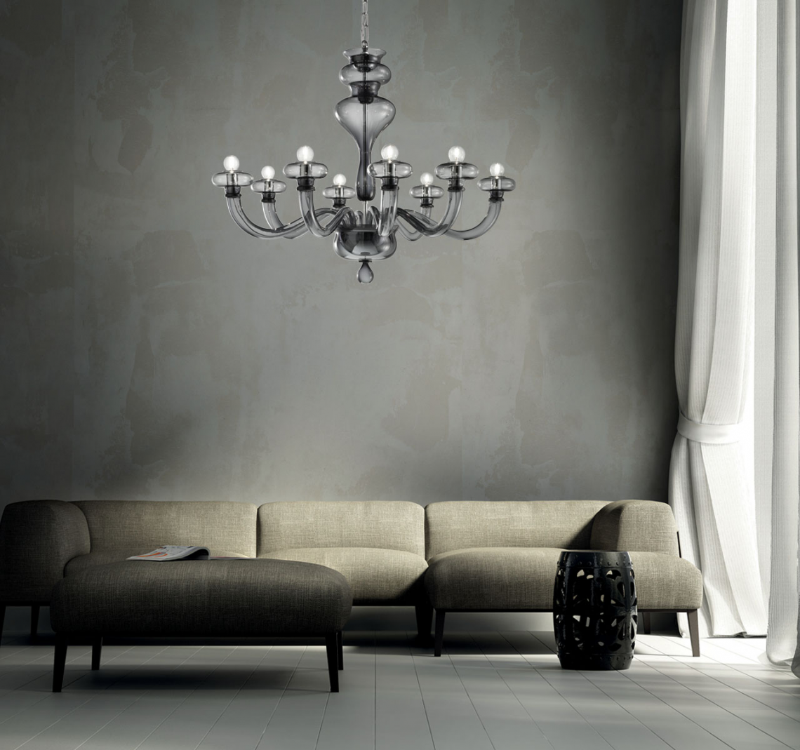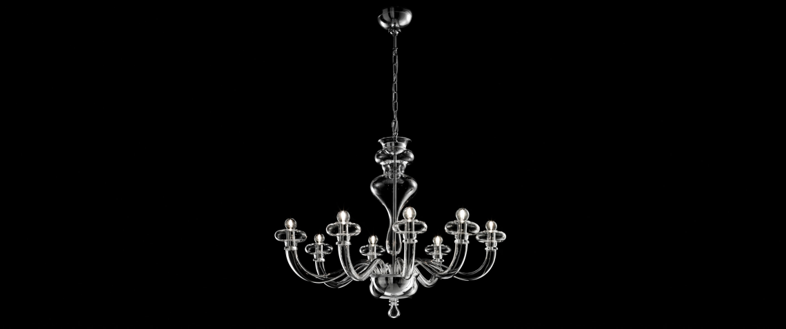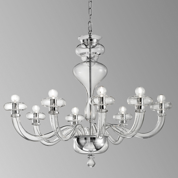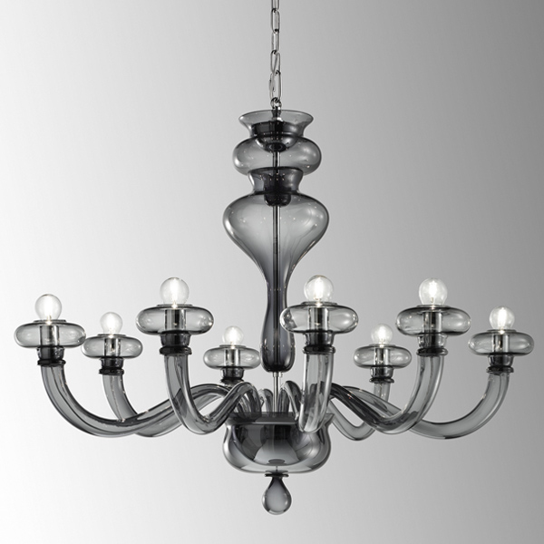 Boheme, disegnato da Oriano Favaretto, è un bellissimo gioco di forme semplici e contemporanee che formano un classico lampadario veneziano in vetro soffiato e lavorato a mano. Disponibile in 2 dimensioni (lampadari a 8 e 12 bracci) e 2 opzioni di finitura (trasparente e fumé).