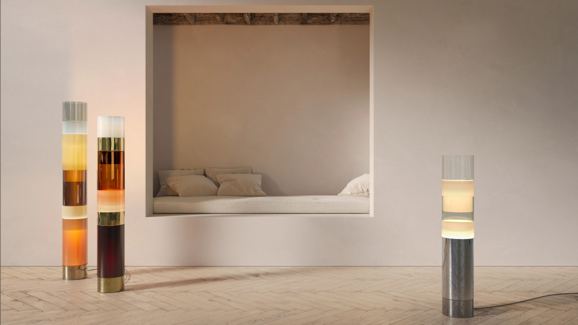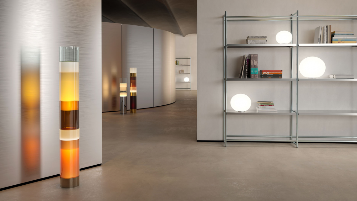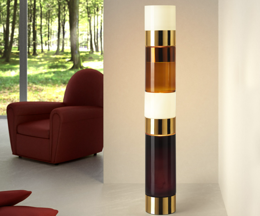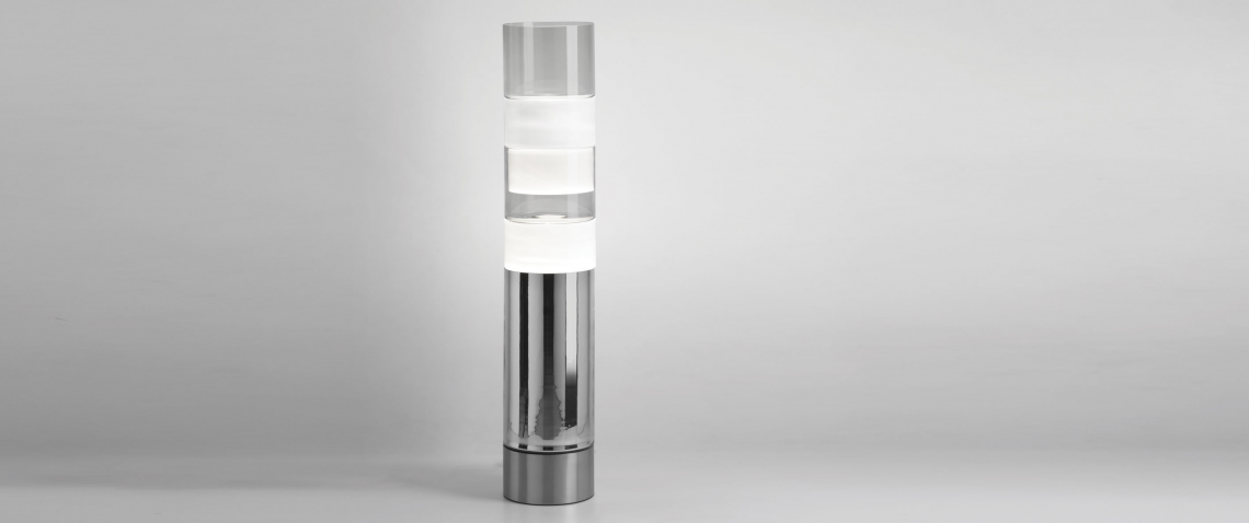 Disegnata da Rockwell Group, Stacking è una lampada da terra creata utilizzando l’idea di cilindri modulari in distinte combinazioni di colori e dimensioni. Questi moduli in vetro soffiato a bocca sono realizzati con una tecnica tradizionale veneziana chiamata “incamiciato” nella quale un Maestro soffiatore utilizza più strati di vetro, ciascuno con trasparenze e proprietà diverse.