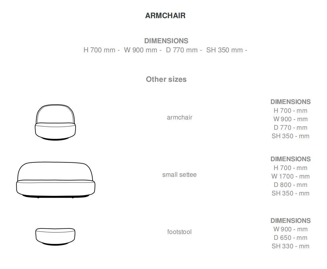The Elysée collection of settee, armchair and footstool was reconstructed by Ligne Roset using plans in the archives of Pierre Paulin. If the aesthetics and the volumes of the original have been scrupulously respected, the comfort of the seats has been significantly improved through the use of the new materials now available and the highly specialised expertise of Ligne Roset in the field of multi-density foams and their assembly. The compactness, graphic purity and visual lightness of the Elysée seating enables them to fit perfectly into small spaces such as city apartments.