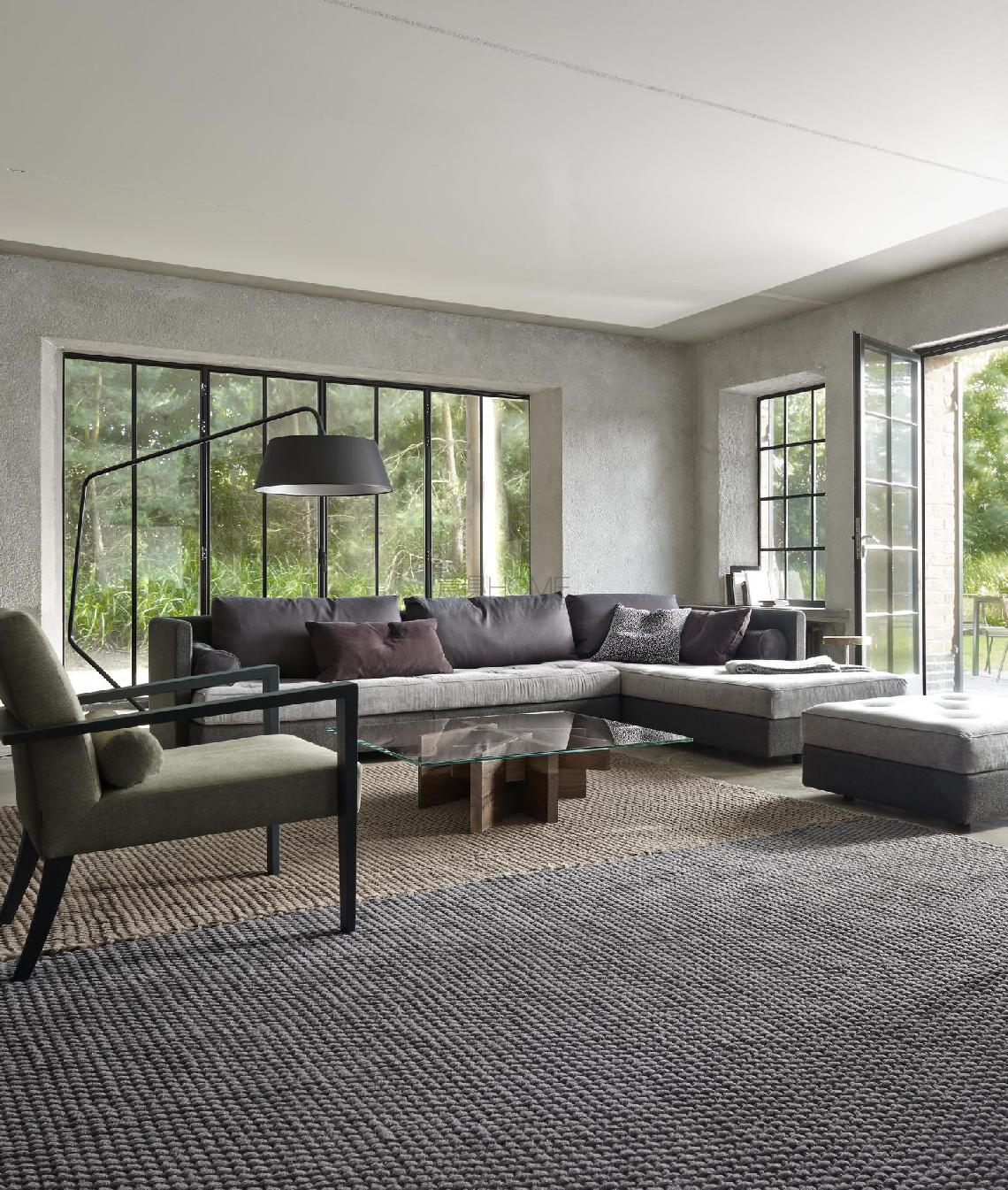 An aesthetic twist on the model NOMADE (1996), NOMADE 2 is more urban, Parisian even, in a 'Rive Gauche' spirit, in the French tradition of art deco. The structures, therefore, remain the same: however, the piped seam on the mattress has slimmed down to a band of thin piping whilst the covered buttons have become discreet stitch detailing and the back cushions clearly assert the refinement of their couture finish.