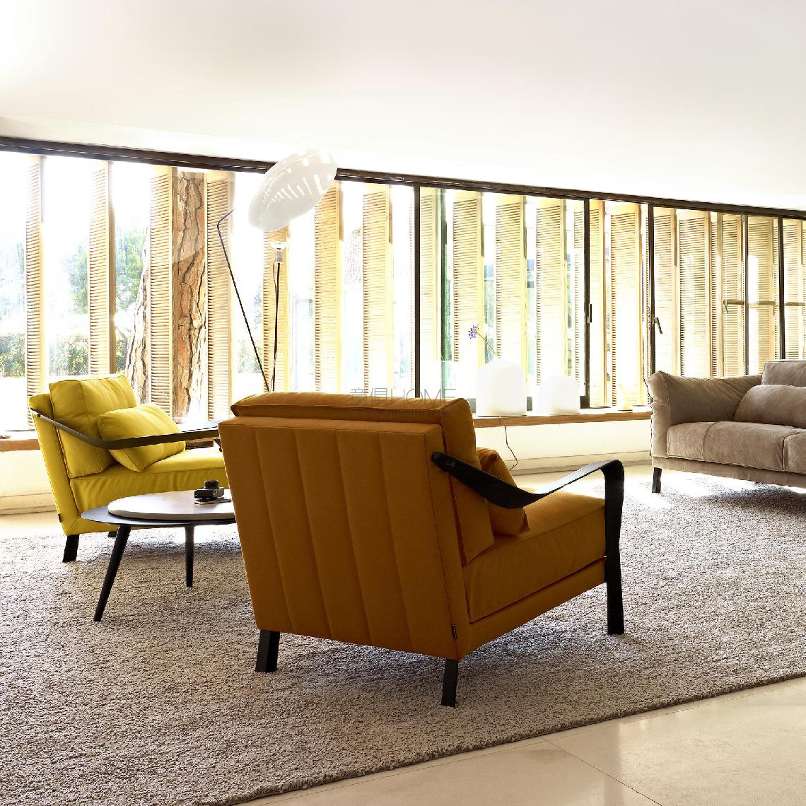 In 2009, Pascal Mourgue brings us Cityloft, with a 'classic international' style 'to last longer than just a fashion'. A light high-legged structure beautifully accommodates the soft, sophisticated cushions. The armrests in matt black lacquered moulded aluminium are a technical triumph, a perfect foil to an attractive, functional design.