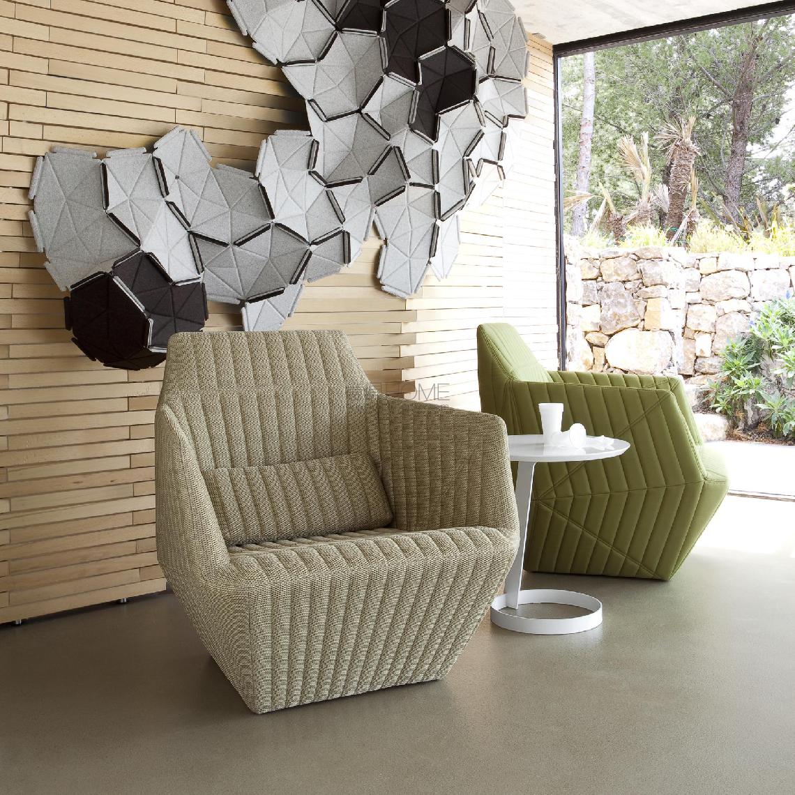 The basis of the Facett range is two settees and an armchair, complemented by two footrests (which can be used as extensions to the seating). The magic of Facett will touch all those who desire purity, without compromising on the perfection of the design. Compare for example the minimalist simplicity of its monolithic form with the ultra-sophisticated work involved in its realisation - in particular the stitching, the complexity of which recalls the cutting and shaping of a precious stone, or even the complex folds of origami.
