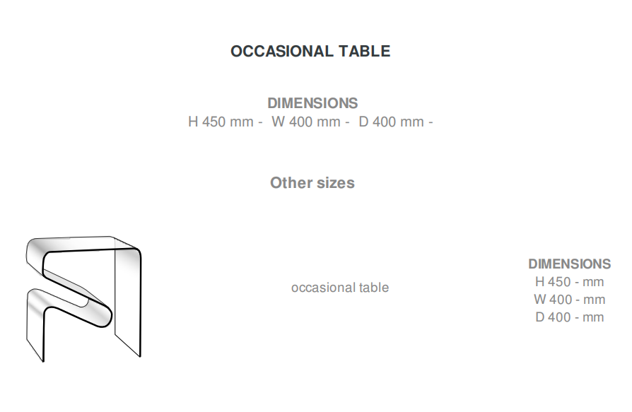 Occasional table / magazine rack in 10 mm thick curved 'cristal' glass with 4 transparent plastic gliders.