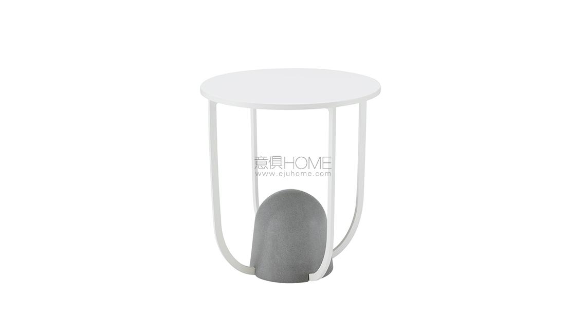 W8 is a small item designed to take its place beside a settee (as a pedestal table) or bed (bedside table). W8 establishes a very successful graphic dialogue between the various materials used as well as the various shapes: a solid base in a rounded conical shape made from turned grey Tuscan stone, from which springs forth a slim black lacquered flat steel structure on which the upper top seems to levitate. The result is a highly graphic and useful object which is at once stable and light, very much present yet somehow transparent, which anchors itself discreetly in the visual space. Rounded conical base in turned gray Tuscan stone. Structure in satin black lacquered flat steel. Top in black lacquered sheet steel, folded onto a panel of multi-ply to avoid hollow metallic sounds during use.