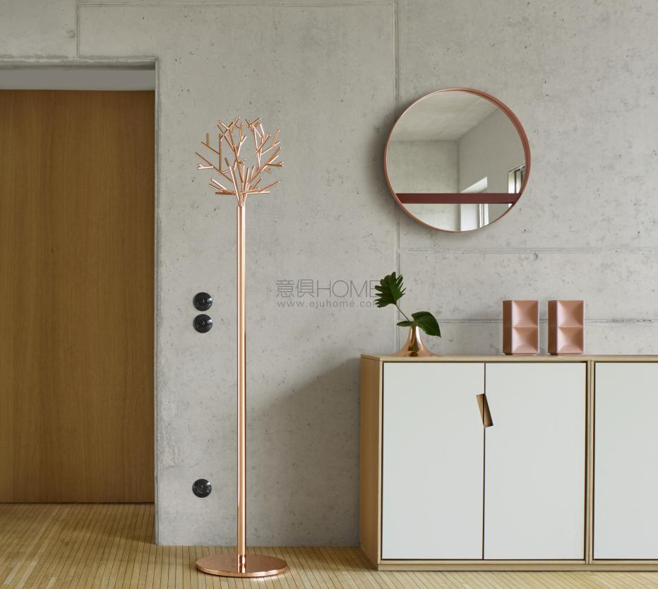 Wall mirror with steel frame finished in rouge- beige lacquer, mirrored glass and brun-rouge lacquered wooden peg. The peg enables one to hang scarves, shawls, etc.