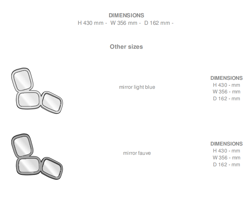 The Oponce triple mirror owes its name to the opuntia ('oponce' in French), a plant from the cactus family with flat, racket-shaped stems, of which there are numerous varieties including the Barbary fig. Oponce is composed of three car rear view mirrors fixed onto an MDF frame and then covered in pigmented split leather finished with toning saddle stitching. The black lacquered steel wall hook is located on the back of the central mirror.