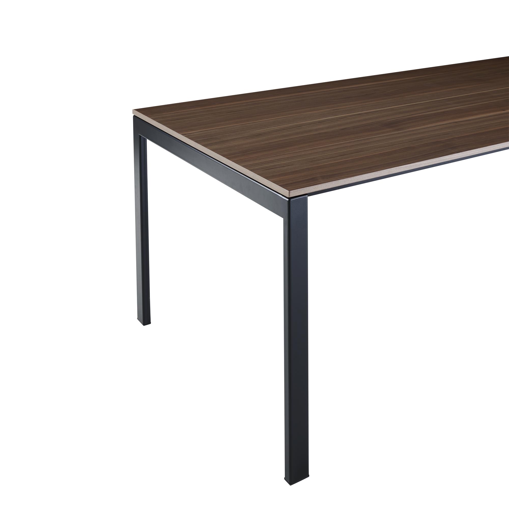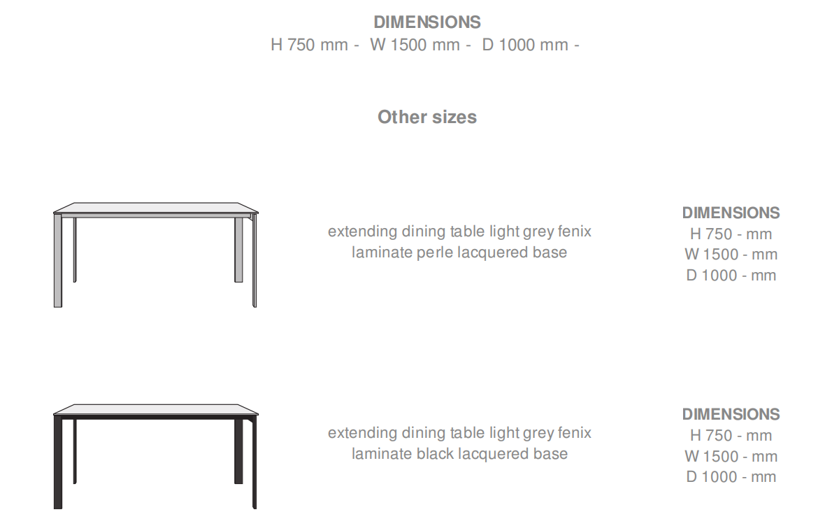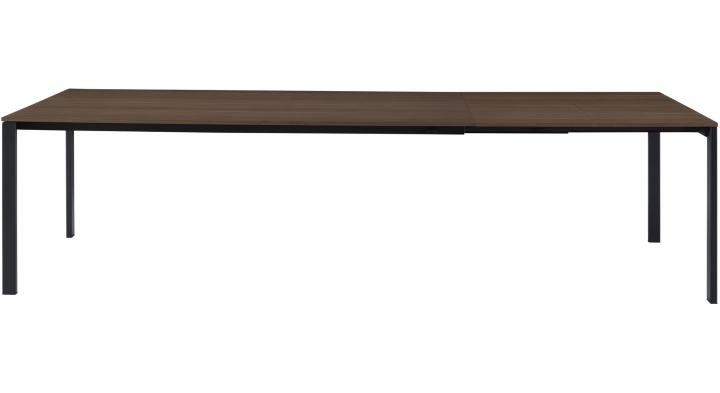 In 2018, to complement the Allungabile rectangular table, our dining table collection is being enriched with the addition of a new extending table with one or two folding end extensions, available in a range of finishes and with the finesse and sophistication of Fattorini, Rizzini & Partners’ metal base. The top is available in a number of finishes : an entirely new type of walnut veneer with the look of solid wood thanks to an assortment of wood sheets boasting vivid colours, veins and contrasts; natural or black-stained oak veneer, or 0.9 mm thick Fenix in noir or gris clair. The top is in one piece: just pull it at one end to unfurl one or two folding extensions concealed beneath the top and unfold them to extend the table by 75 cm (table L 150 with one extension) or even 50 cm or 100 cm (table L 200 with 1 or 2 extensions).