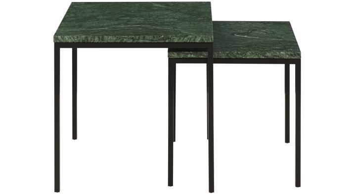 Top (38 x 38 x thickness 2 cm or 45 x 45 x thickness 2cm) in LATTE (brecha maritima) or in VERDE (Indian Green) or in CORSé (Marron emperador) coloured marble, brilliant-polished with stain-resistant treatment. Structure in satin black lacquered steel with black gliders.