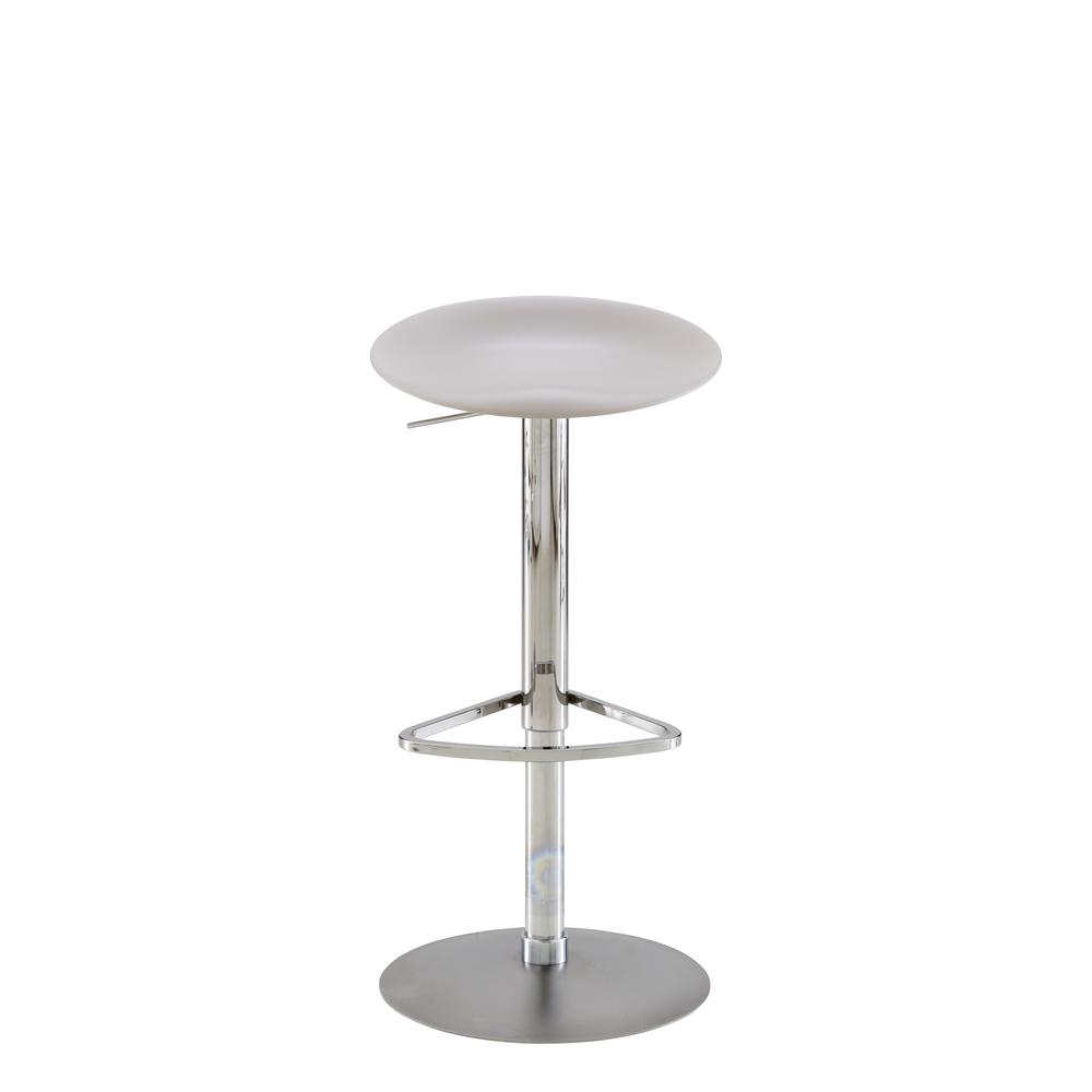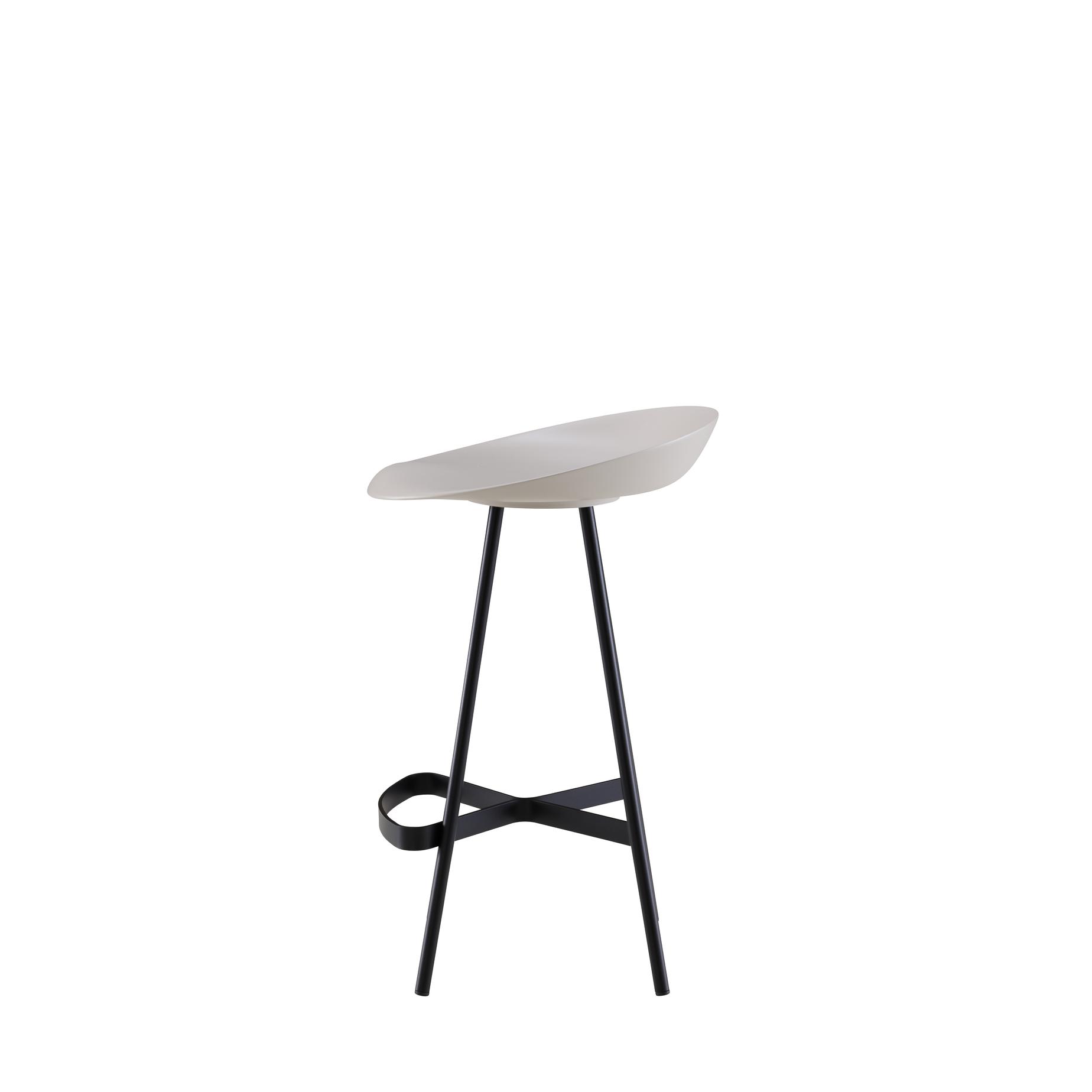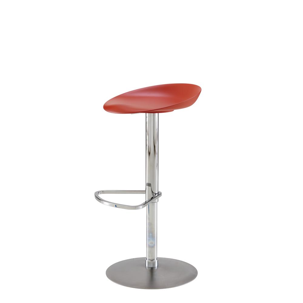 lacquered steel and seat shell in satin-finish moulded polyurethane (colour lacquer : chocolat, brique or argile). Footrest is 20 cm from the floor. The distance between the seatand footrest is 41 cm. Fixed stool with structure in satin black lacquered steel and seat shell in satin-finish moulded polyurethane (colour lacquer : chocolat, brique or argile). Footrest is 31 cm from the floor. The distance between the seatand footrest is 41 cm. Piston stool with seat shell in satin-finish moulded polyurethane (colour lacquer : chocolat, brique or argile). Chromed metal structure and brilliant-chromed footrest. The dimensions and seat height indicated above correspond to the seat in its highest position. In its lowest position the overall height is 63.5 cm and the seat height is 55.5 cm. The distance between the seatand footrest is 40 cm.