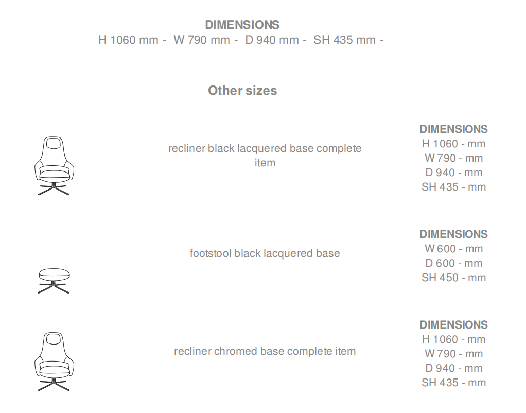坐墊由機(jī)械焊接。扶手和靠背用注入的泡沫材料包覆成型的焊接管制成。扶手和靠背覆蓋有 110克/平方米的聚酯填料。 金屬基底由光滑的黑色環(huán)氧樹脂或光滑的鉻鍍層。扶手椅的旋轉(zhuǎn)基底與設(shè)置扶手椅傾斜的機(jī)械裝置有關(guān)。矮凳底 座是固定的。 舒適度:底座和靠背由Bultex高回彈聚氨酯泡沫制成(38 kg / m3 -3.6 kPa)和(36 kg / m3 -2.8 kPa)。100g /m2 聚酯填料面層。 縫紉/罩布:座椅和靠背明線縫制3mm布罩。 不可拆卸型號 茶幾 金屬基底由光滑的黑色環(huán)氧樹脂或光滑的鉻鍍層。頂部為帶有黑色大理石外觀的砂巖飾面或帶有白色大理石外觀 的砂巖。