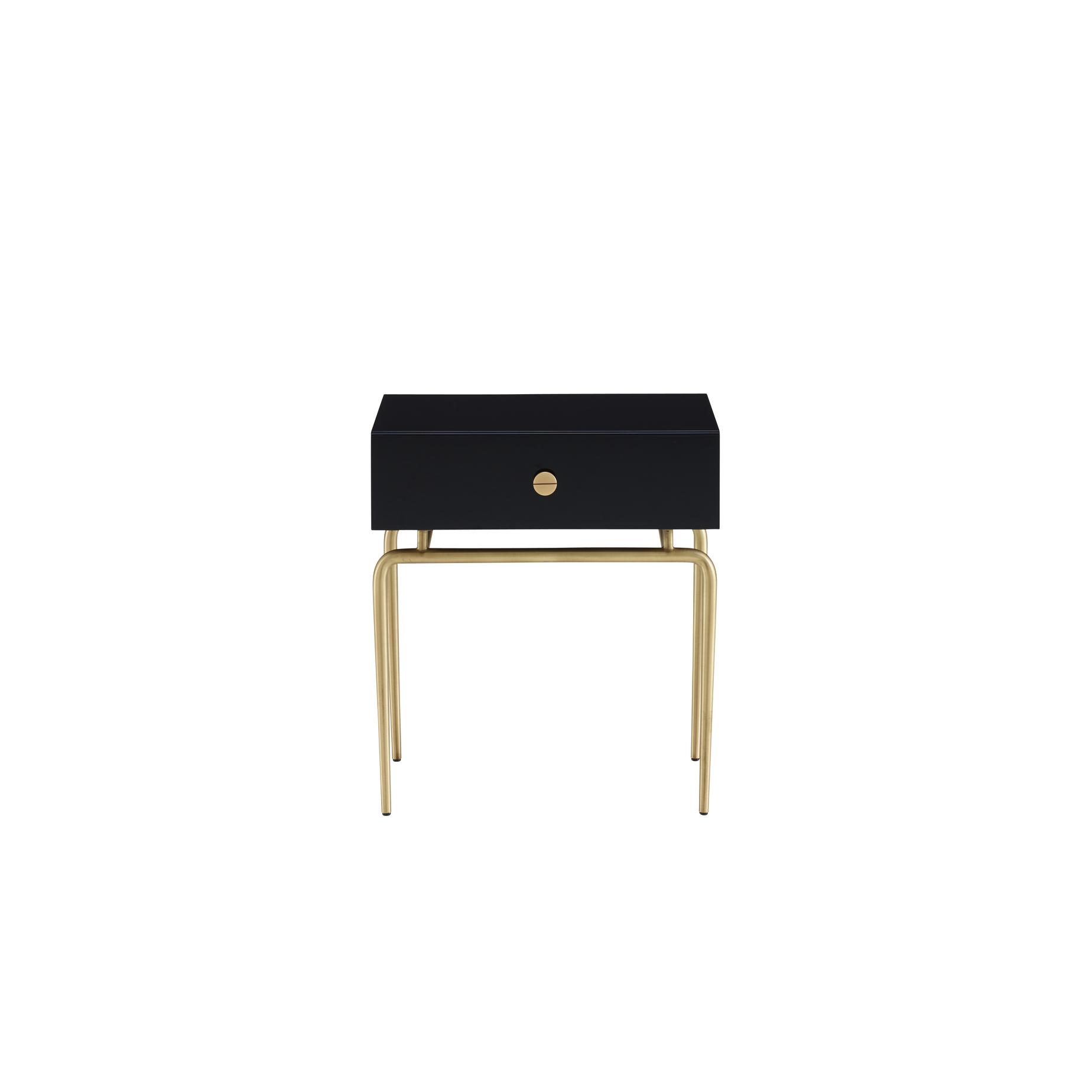 Funny little pieces, attractive and timeless, which will bring a quirky touch to a Haussmannian apartment, a contemporary home or a relaxed second home : this was what Michel Roset was counting on when he decided to put the Débourgeoisée bedside table and console into production. Base and handle(s) in matt brushed brass-coated steel. Chest of drawers in gloss black lacquered MDF. Drawer(s) on invisible runners, equipped with controlled closing.