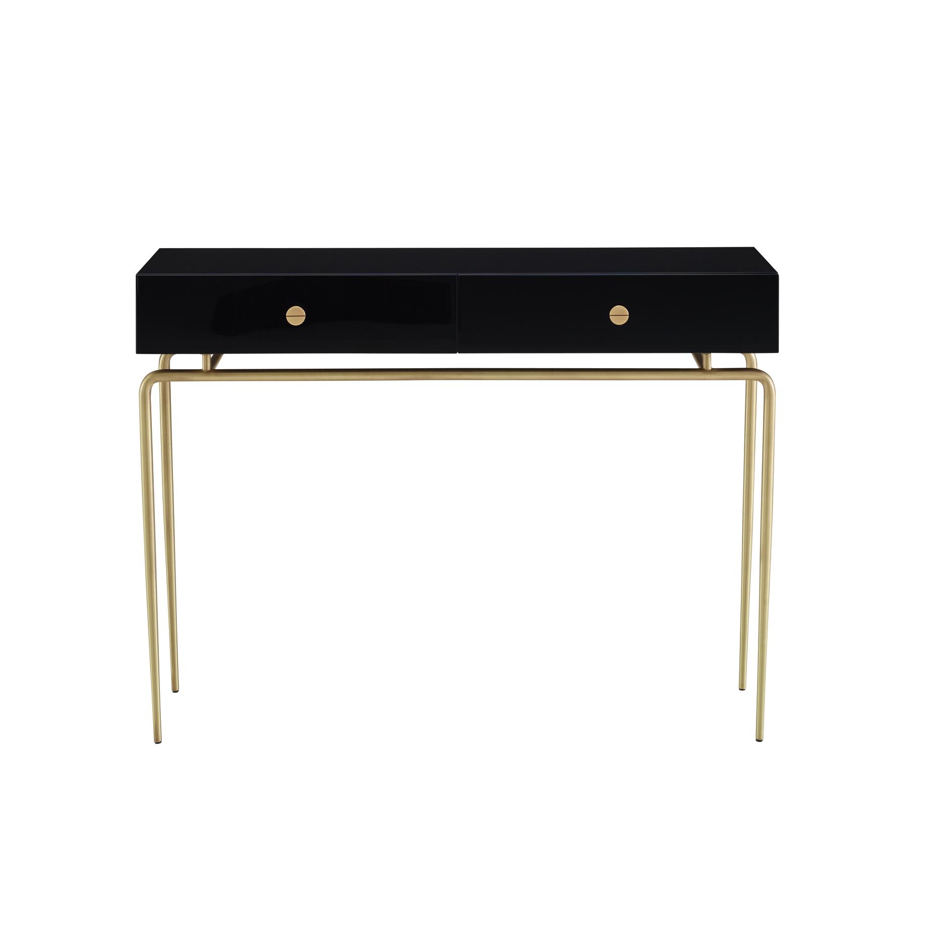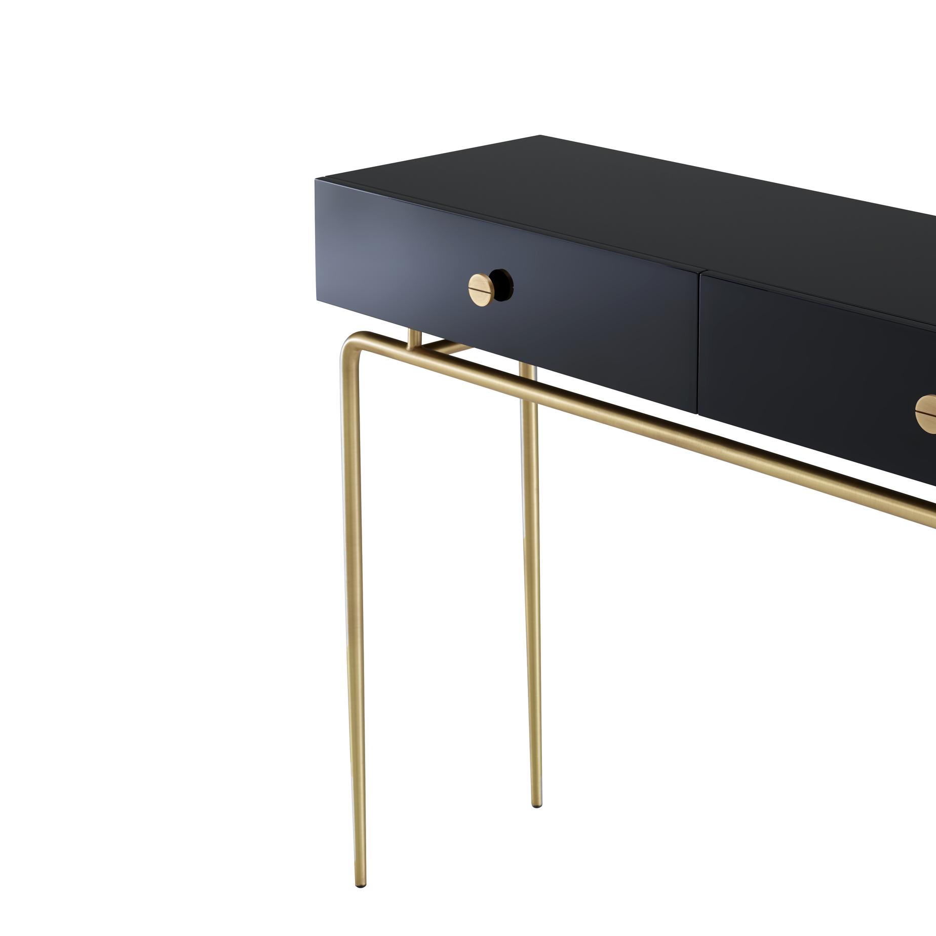 Funny little pieces, attractive and timeless, which will bring a quirky touch to a Haussmannian apartment, a contemporary home or a relaxed second home : this was what Michel Roset was counting on when he decided to put the Débourgeoisée bedside table and console into production. Base and handle(s) in matt brushed brass-coated steel. Chest of drawers in gloss black lacquered MDF. Drawer(s) on invisible runners, equipped with controlled closing.