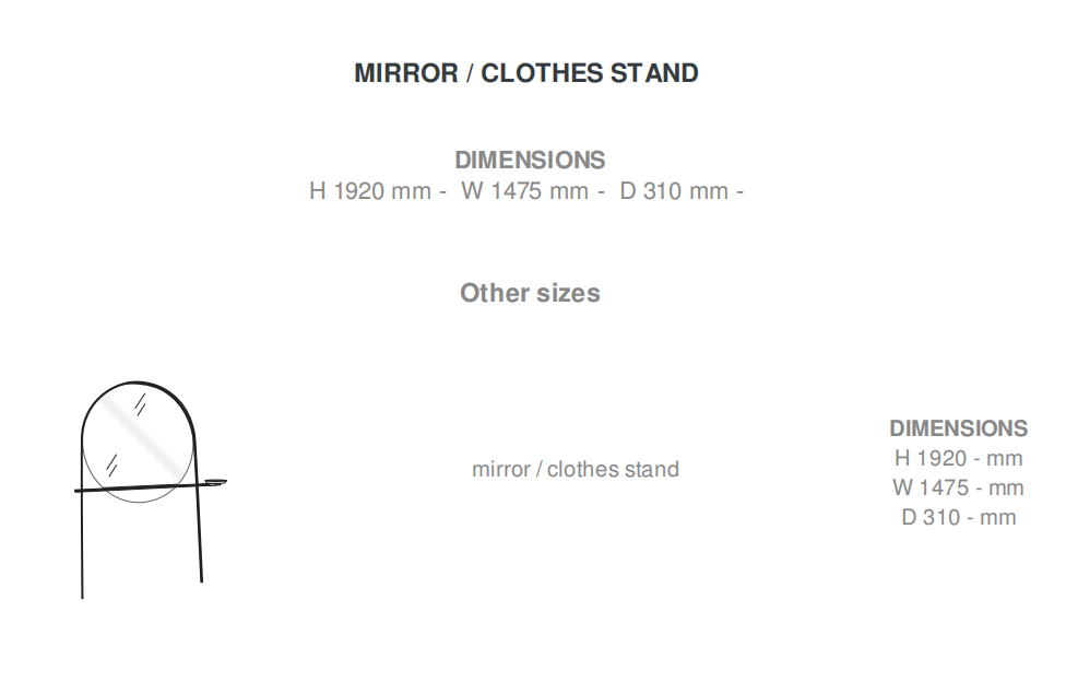 Geoffrey is a mirror/clothes stand, the pared- down design of which renders it minimalist whilst its dimensions (H 192 x W 147.5 cm) make it quite spectacular! A mirror to check one’s reflection, a dish for one’s keys, a rail on which to hang a scarf or umbrella : Geoffrey is a highly graphic useful object which is at once stable and light, with a spectacular presence whilst ‘opening up’ the space around it thanks to its large mirror.