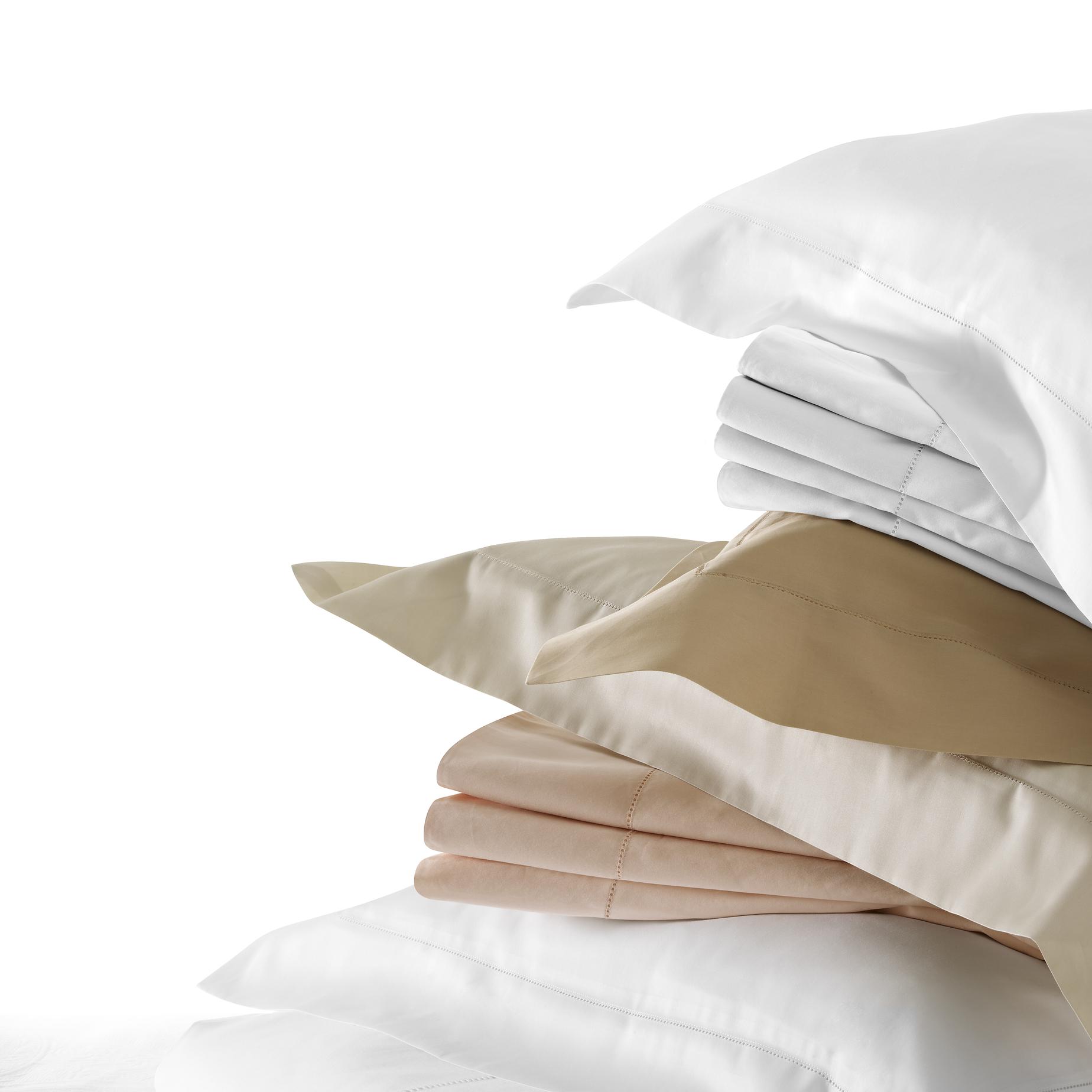 Bedlinen in 100 % cotton satin (115 g/m2) with Venice openwork (NB not flat sheet). The 60 x 60 and 80 x 80 pillowcases have 4 flounces, whilst the 70 x 45 pillowcase has 2. Colours may be selected from a swatch of 98 colours.