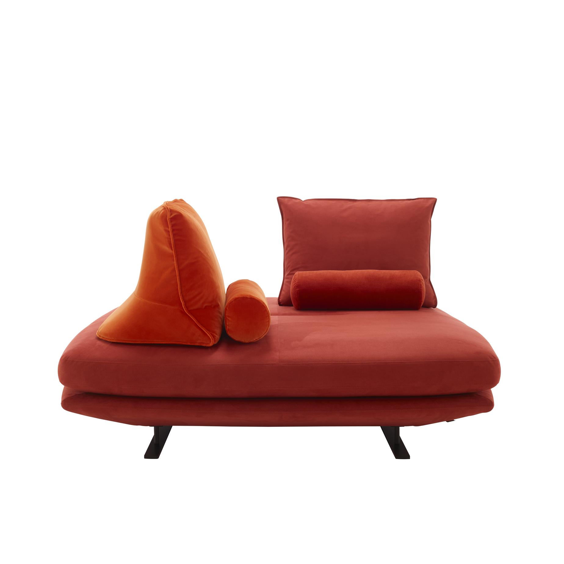 Quite apart from the habitual styling exercise which surrounds a new settee - which consists of a principally aesthetic proposal - Prado represents first and foremost an approach based on the study of lifestyles, or in short, the human being. Here, therefore, we find the same ambition as that which brought us Smala in the early part of the new century. Prado consists of a vast seat which may be used either independently or with other elements, on which back cushions may be scattered at will. There is total freedom since these cushions, which are weighted and equipped with an anti-slip system, will remain in place without needing to be leant against or attached to anything. They could therefore be arranged on the floor for a few leisurely moments around a low table, whilst the seat could do duty as an occasional bed simply by turning over its seat cushion, the reverse of which is covered with mattress ticking.