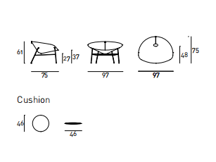 Armchair with preformed shell in birch plywood, natural finish, or lacquered in black or white. Covering in leather or hide. Supporting base in AISI 304 stainless steel tube with matt-satin finish. Seat depth 48cm.