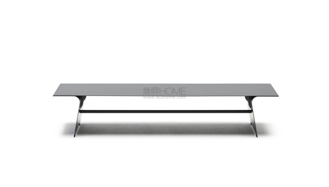 Bench consisting of three elements in 3mm sheet steel welded together, reinforced by two under-top 8mm structural element and by a steel bar that joins the two outer legs to provide rigidity to the whole structure. Ground support secured by plastic feet. Finishing with epoxy powder coating in black ANODIK.