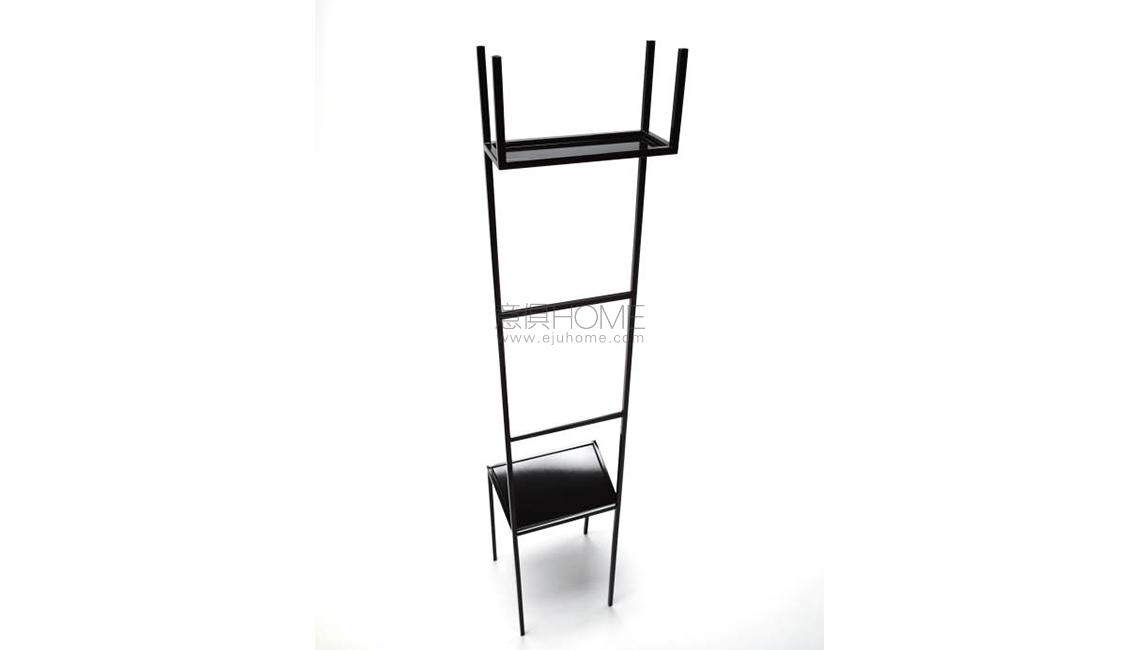 Clothes Valet. Square tubular frame 15x15mm. Top-seat with 20/10 steel structure. Black PVC tips. Epoxy powder coating in RAL 9010 white or 9017 black. Dimensions: 42x35x196cm
