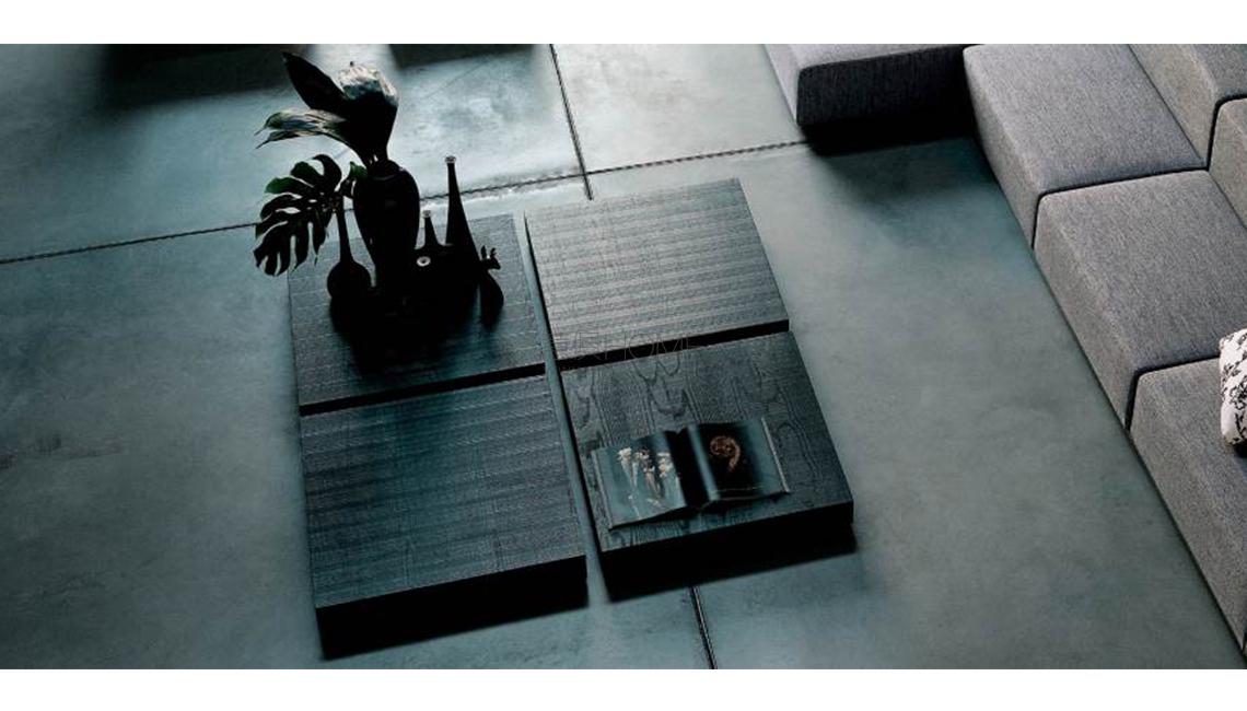 Small table made by carving a single block of white Carrara or black Marquinia marble, hollow inside; the wooden version is made of MDF frame, veneered in oak, dark-dyed finish. Both version with feet in AISI 304 stainless steel, matt-satin finish.