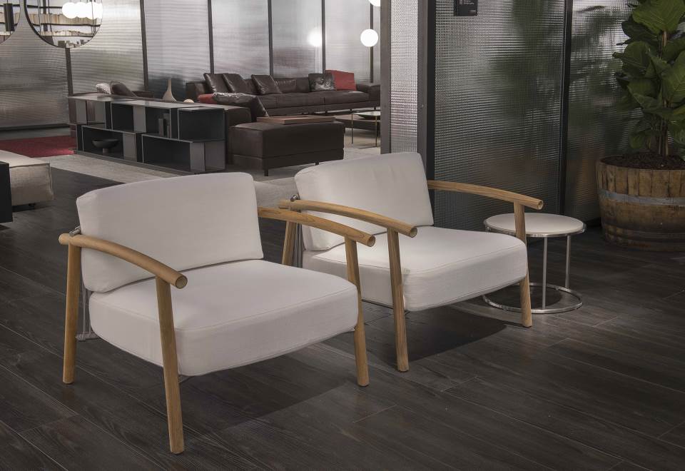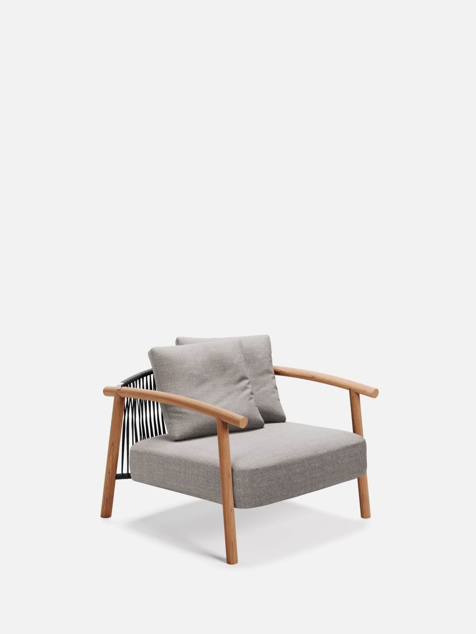 An object that evokes nature and open space, an armchair that conveys a sense of lightness and naturalness thanks to a wooden structure, a measured but distinctive character.