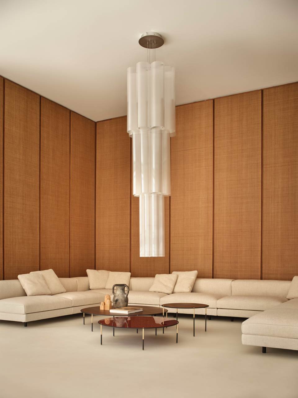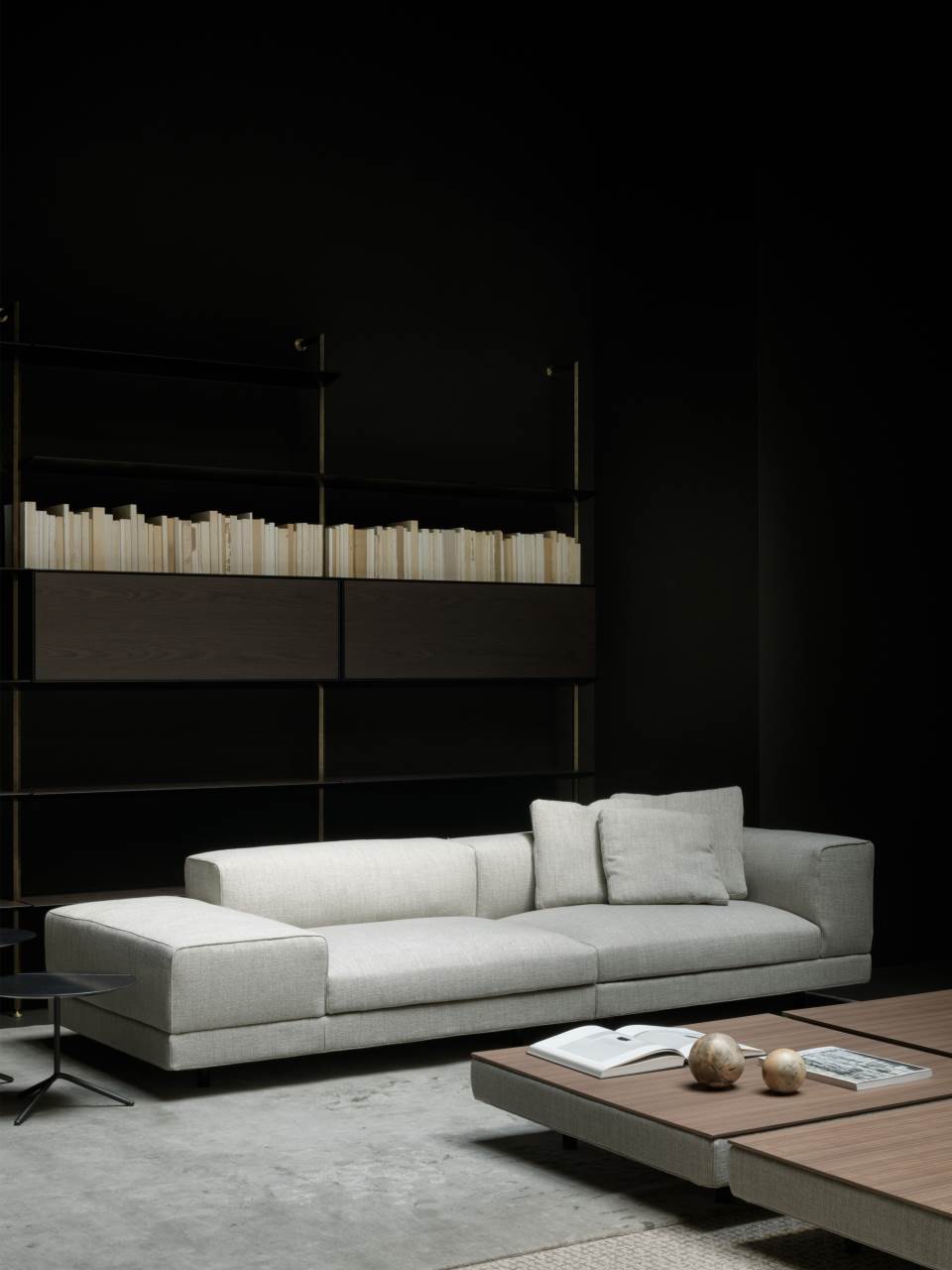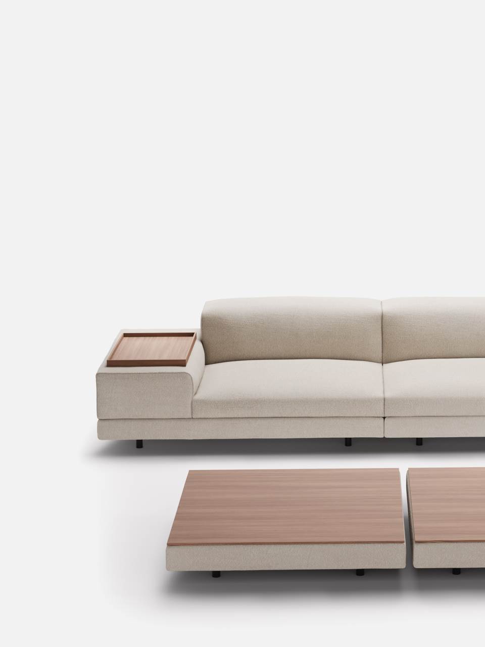 A cloud suspended in the air, a floating object that owns an unconventional and therefore inviting gravity. A base, apparently in mid-air, supports soft cushions, rounded hills with gentle slopes on which to rest undisturbed.