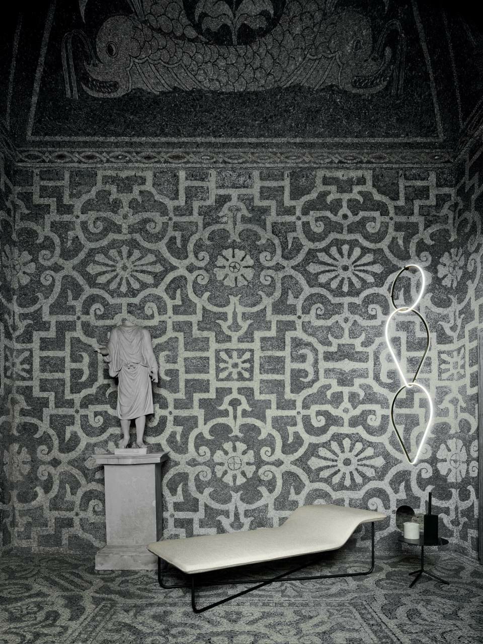Daybed available for indoor and outdoor. Indoor Version: supporting frame in coupled tubular steel, section 20x20 mm, lacquered with epoxy powder coating gunmetal grey colour and sprung with coated rubber elastic straps. Padding in polyurethane foam covered in 100% polyether thermally bonded onto a polyamide velveteen backing. Tubular steel base ?20 mm, lacquered with epoxy powder coating gunmetal grey colour, fitted to the supporting frame by means of pins. Fabric or leather upholstery, both fully removable by zippers. Outdoor Version: supporting frame in coupled tubular steel, section 20x20 mm, lacquered with epoxy powder coating for outdoor and sprung with coated rubber elastic straps with stainless steel hooks. Padding with open cell structure polyurethane foam DRYFEEL S and fibre for outdoor, covered with heat- sealed waterproof fabric protection. Tubular base ?20 mm in stainless steel AISI 316, lacquered with epoxy powder coating for outdoor, gunmetal grey colour, fitted to the supporting frame by means of pins. Upholstery with outdoor fabrics only fully removable by zippers.