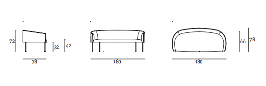 Sofa with backrest frame with steel insert embedded in cold-expanded polyurethane foam. Seat chassis in tubular steel 20x20 mm thick, sprung with coated rubber elastic straps, padded in polyurethane foam and fixed to the backrest frame by steel plates. Lining in 100% polyether thermally bonded onto a polyamide velveteen backing and needle punched, resinated, nonwoven polyester fibre, bonded onto a polyamide velveteen backing. Steel feet ?18 mm lacquered with epoxy powder coating gunmetal grey colour, screwed to the backrest frame with a bushing. Adjustable black PVC tips. Fabric or leather upholstery; the fabric version only is fully removable by zippers and Velcro fastenings.