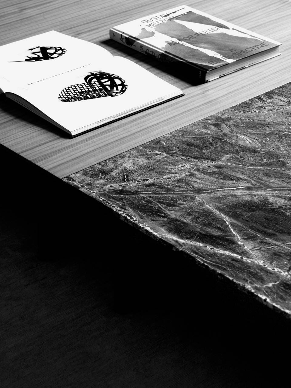 The Sumo low table available in wood or marble, invites to rediscover the pleasure of materiality through refined plays of juxtapositions.