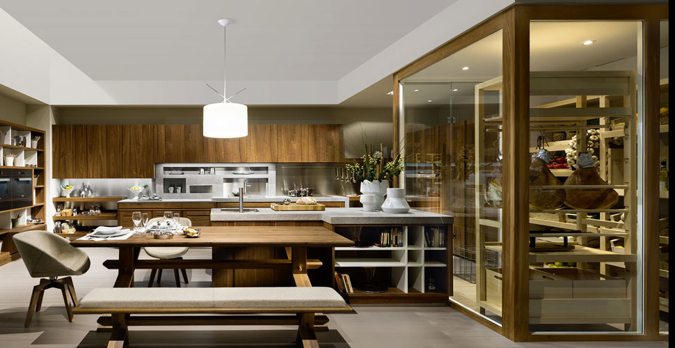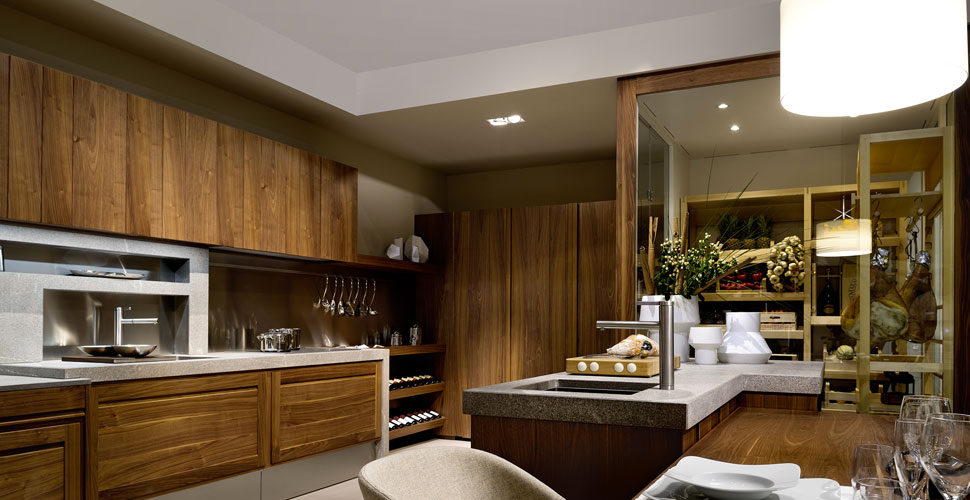 The wine cellar belonging to Canaletto project is customizable to fit any kitchen by L’Ottocento as well.