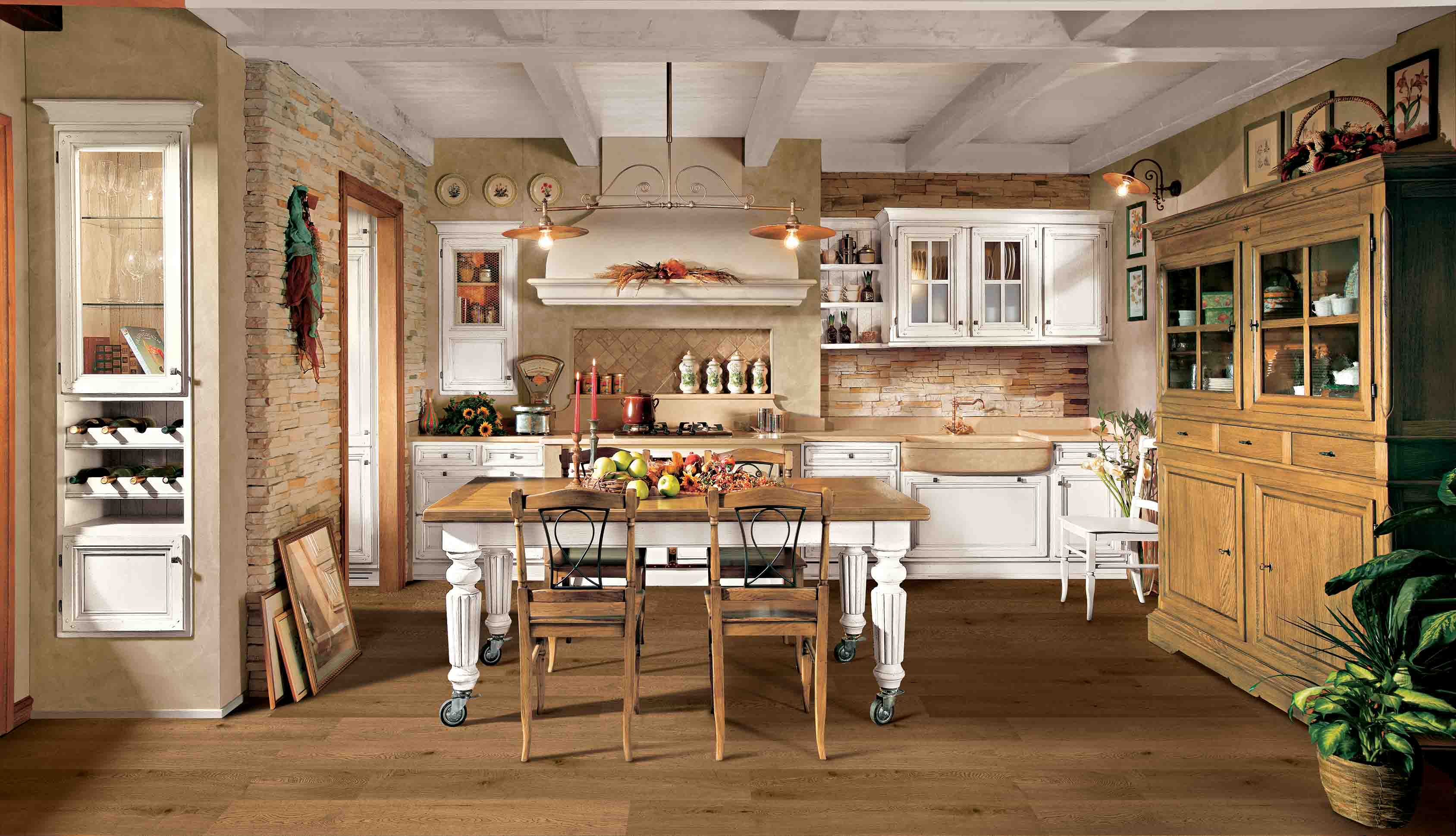 Country kitchens of Old Style collection recall the typical shapes of country settings and give the heart of the house a warm atmosphere characterized by precious design furniture together with materials and details of the typical venetian tradition.